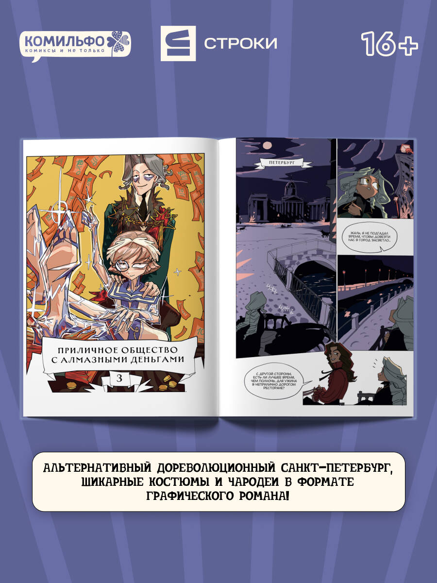 Захватывающе красивая история об альтернативном (и очень магическом) Санкт-Петербурге начала ХХ века! Впервые на бумаге популярный вебтун про девушку, обладающую тёмным магическим даром… Способная воскрешать мёртвых Шура наводит ужас на родной городок, за что мать отправляет её в монастырь! Но слухи о ней доходят до столицы, и эксцентричный театральный чародей Гений Ив решает выкрасть Шуру и пристроить её на государственную службу. Вот только Шурино присутствие может нарушить хрупкое равновесие чародейского сообщества… От культовой комиксистки Евгении Чащиной («Бычий цепень», «Гигантские муравьи Новосибирска»), с лёгкостью покоряющей новый жанр! Понравится любители манги, манхвы и вебтунов, фэнтези и альтернативной истории, а также авторских комиксов и красивой авторской иллюстрации!| Издательство | ООО "Издательство "Эксмо" |