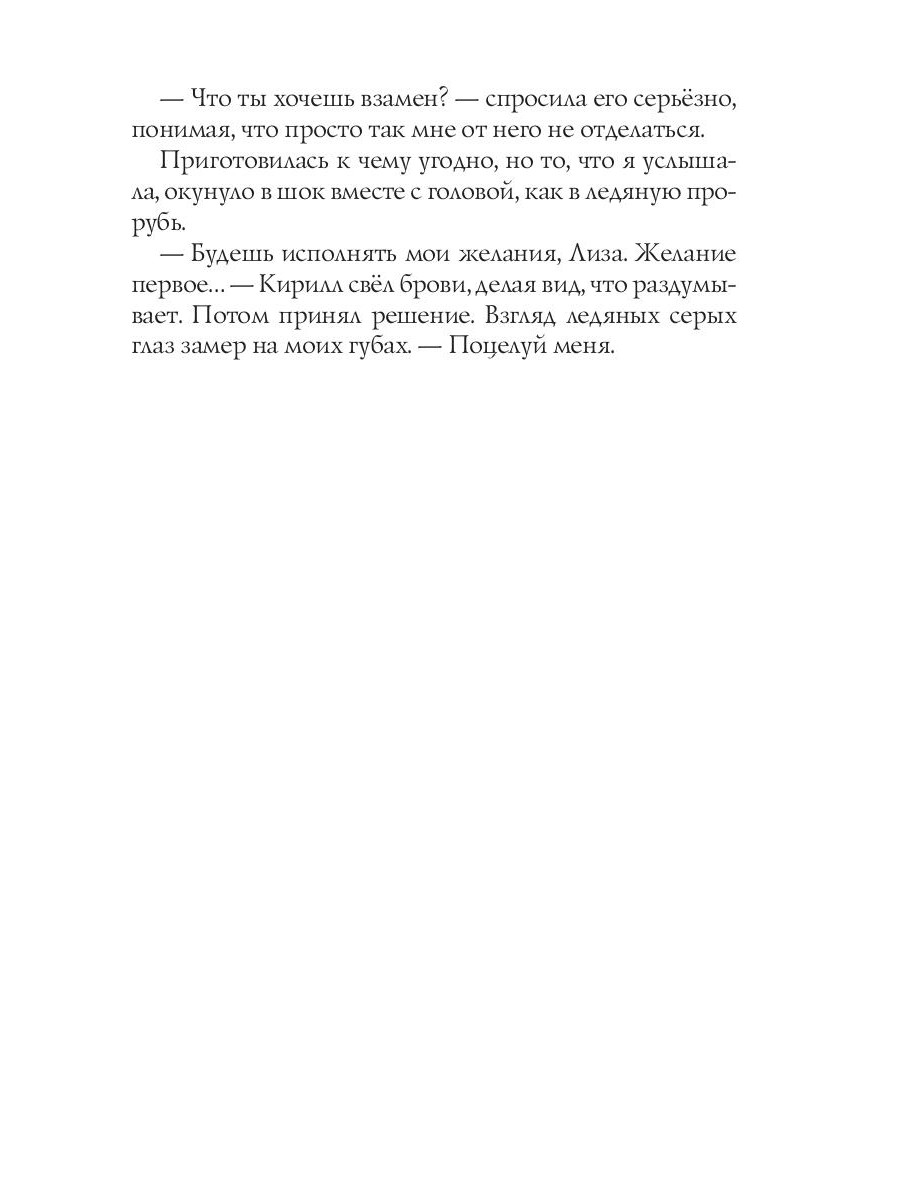 - Будешь исполнять мои желания, Лиза. Желание первое… - Кир свёл брови, делая вид, что раздумывает. Потом принял решение. Взгляд ледяных серых глаз замер на моих губах. - Поцелуй меня.