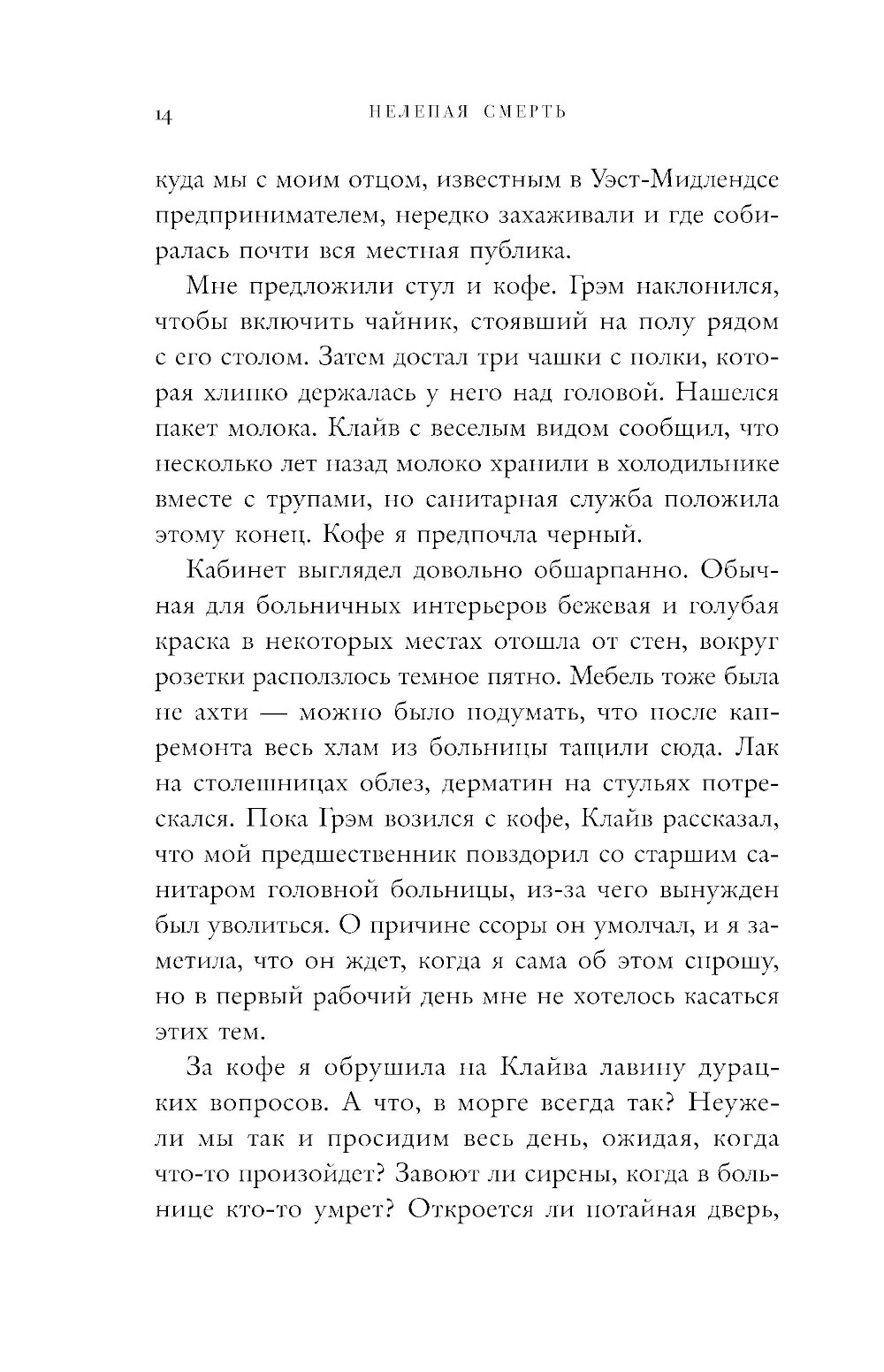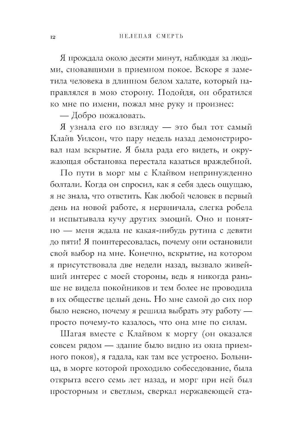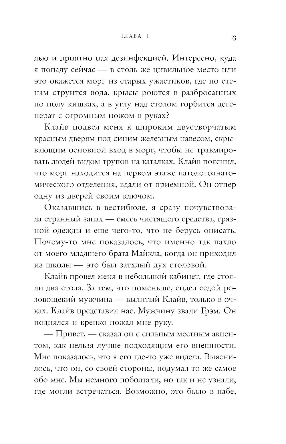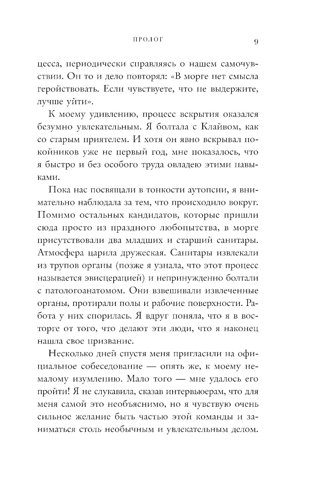 30-летняя британка, которой надоела работа в Национальной службе здравоохранения, устраивается стажером в больничный морг. В свой первый год работы она учится проводить вскрытие, определять причину смерти, общаться с убитыми горем родственниками и сомнительными гробовщиками. Автор откровенно рассказывает о себе и своей работе, сообщая порой жуткие подробности о человеческом теле. В книге подробно описано, как и с помощью чего делается вскрытие, какие правила при этом нужно соблюдать и какие ошибки допускают патологоанатомы. Автор не теряет веры в людей и продолжает ценить жизнь, ежедневно сталкиваясь с ситуациями, от которых остальные теряют дар речи.| Издательство | Эксмо |