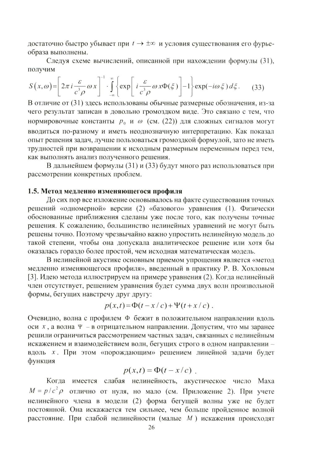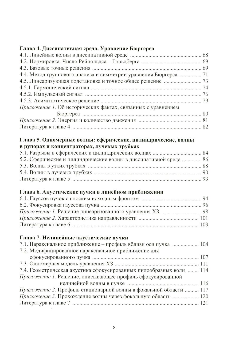 В монографии изложены как основы нелинейной акустики, так и недавно развитые ее разделы. Среди них - интенсивные волновые пучки, возбуждение волн и течений, акустические резонаторы, нелинейности с особенностями, селективно-поглощающие и диспергирующие среды, сильно нелинейные волны. Описаны новые математические модели, приближенные аналитические методы и точные решения. Указаны приложения к гидроакустике, механике ударных волн, медицине. Книга содержит монографический материал, но полезна и как учебное пособие. Для студентов, аспирантов и научно-технических работников, занимающихся физикой нелинейных волн, акустикой, математическим моделированием, общей теорией нелинейных волн.| Издательство | Изд. Моск.университета |