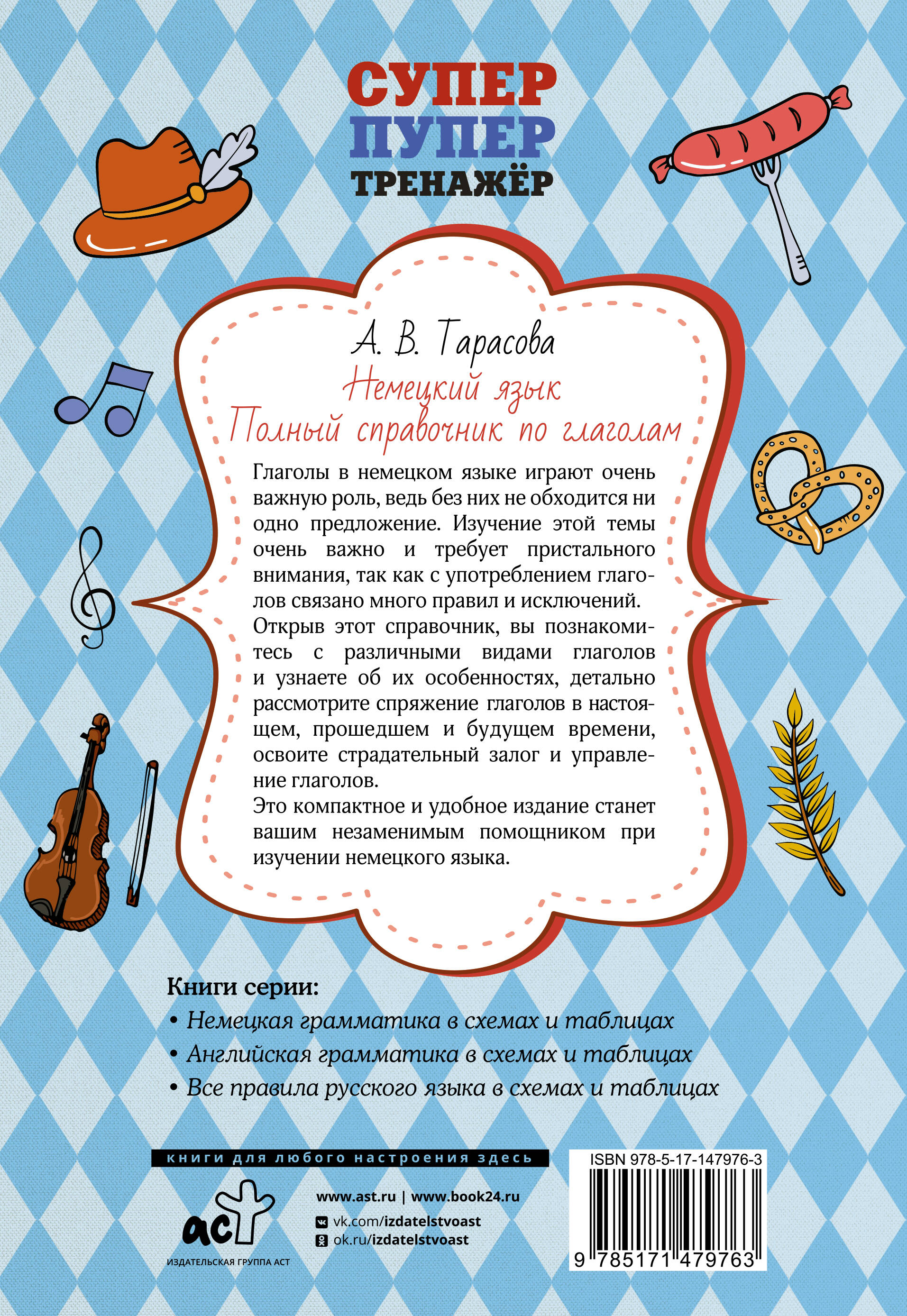 Тарасова Анна Валерьевна - лингвист, преподаватель с многолетним опытом работы, автор популярных учебных пособий для детей и взрослых. В этой книге вы найдете подробную информацию о глаголах немецкого языка. Глаголы играют очень важную роль, ведь без них не обходится ни одно немецкое предложение. Изучение этой темы очень важно и требует пристального внимания, так как с употреблением глаголов связано много правил и исключений. Открыв этот справочник, вы познакомитесь с различными видами глаголов и узнаете об их особенностях, детально рассмотрите спряжение глаголов в настоящем, прошедшем и будущем времени, освоите страдательный залог, повелительное наклонение и управление глаголов. Это компактное и удобное издание станет вашим незаменимым помощником при изучении немецкого языка. Издание рекомендуется как справочное пособие для всех, кто изучает немецкий язык.| Издательство | АСТ |