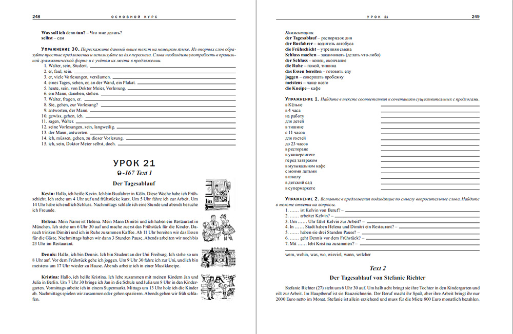 Издание для тех, кто хочет овладеть немецким языком самостоятельно и быстро. Пособие включает в себя сведения по фонетике, лексике и грамматике, упражнения разной степени сложности с ключами, поурочные словарики, немецко-русский и русско-немецкий словари.