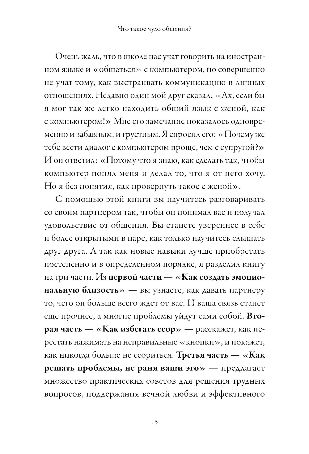 Известный психотерапевт Джонатан Робинсон уверен: правильное общение в паре - залог счастливых и долгих отношений. И научиться этому совсем несложно. В книге он описывает основанный на научных исследованиях метод, который помог тысячам пар преодолеть сложные периоды и научиться лучше понимать друг друга. Благодаря доступным объяснениям и большому количеству практических примеров вы легко сможете внедрить этот метод и в свою жизнь.| Издательство | Манн, Иванов и Фербер |