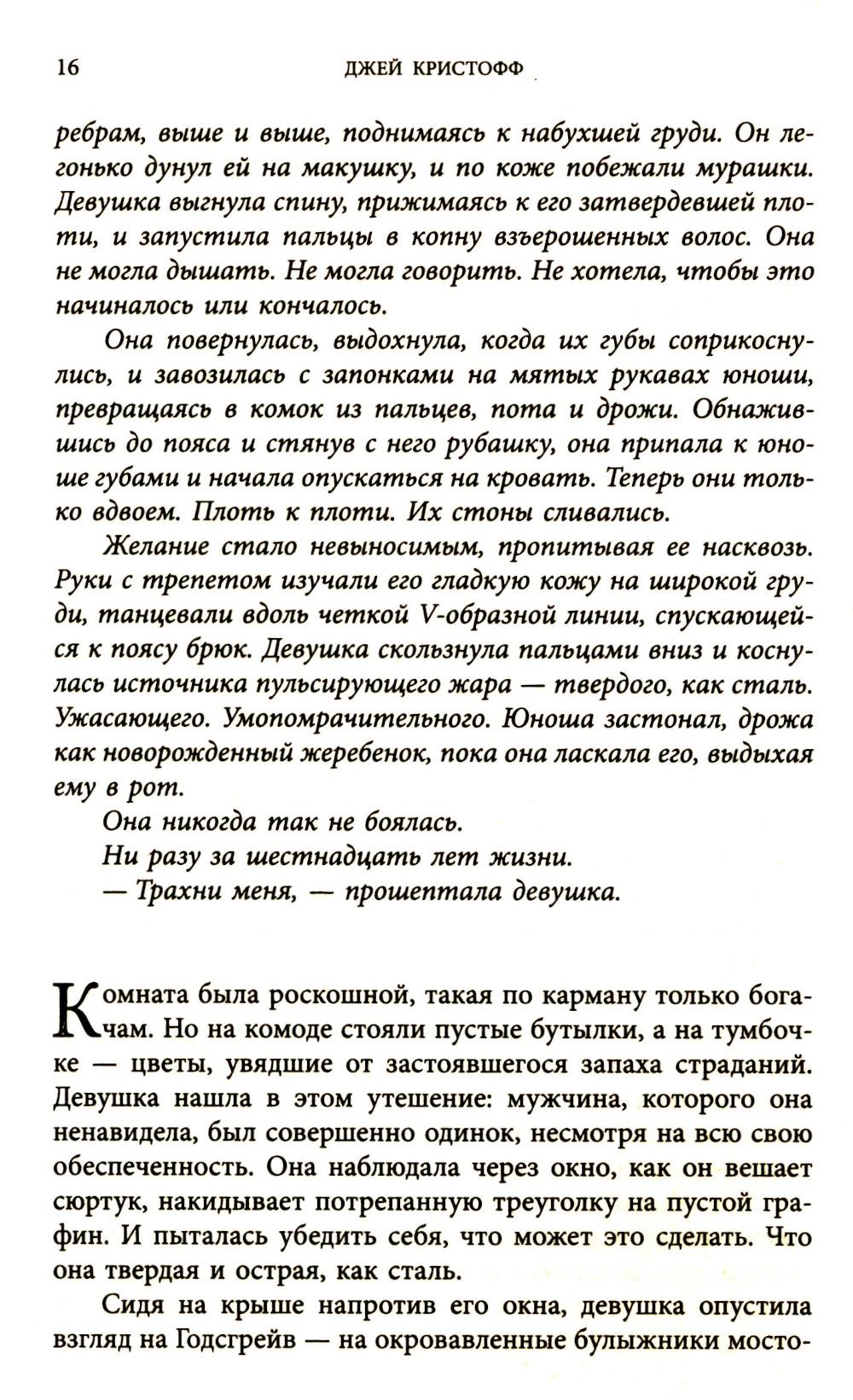 Комплект содержит книги Дж. Кристофф: «Неночь» История ассасина Мии Корвере превратилась в международный бестселлер. Жестокий магический мир под тремя солнцами, эротика, тонкое чувство юмора и интриги коррумпированных политиков - вот, за что читатели ценят трилогию. Джей Кристофф - австралийский писатель, один из соавторов нашумевшего научно-фантастического романа «Иллюминэ», снискал мировую славу произведениями в жанре фэнтези и фантастики. Книги Кристоффа не раз становились бестселлерами «The New York Times», номинировались на литературные премии и возглавляли читательские рейтинги. В стране, где светят три солнца и ночь никогда не наступает, юная Мия Корвере приходит в школу ассасинов, чтобы стать убийцей и отомстить тем, кто уничтожил её семью. Мия лишилась родных после того, как её отец пытался поднять восстание и потерпел неудачу. Оставшись в одиночестве, без поддержки друзей, она пряталась в городе, построенном из костей мертвого бога. Её преследовали Сенат и бывшие товарищи отца. Однако у девушки есть редкий дар и он открыл для нее двери в будущее, о котором она не могла и помыслить. «Годсгрейв» Мия Корвере стала ассасином и обрела свое место среди Клинков Матери Священного Убийства, однако ничуть не приблизилась к желанной цели - возмездию. Когда по стране расходится весть о том, что ее смертельные враги появятся в финале грандиозных игр в Годсгрейве, Мия продает себя в коллегию гладиатов - ради возможности прикончить злодеев.| Издательство | АСТ |