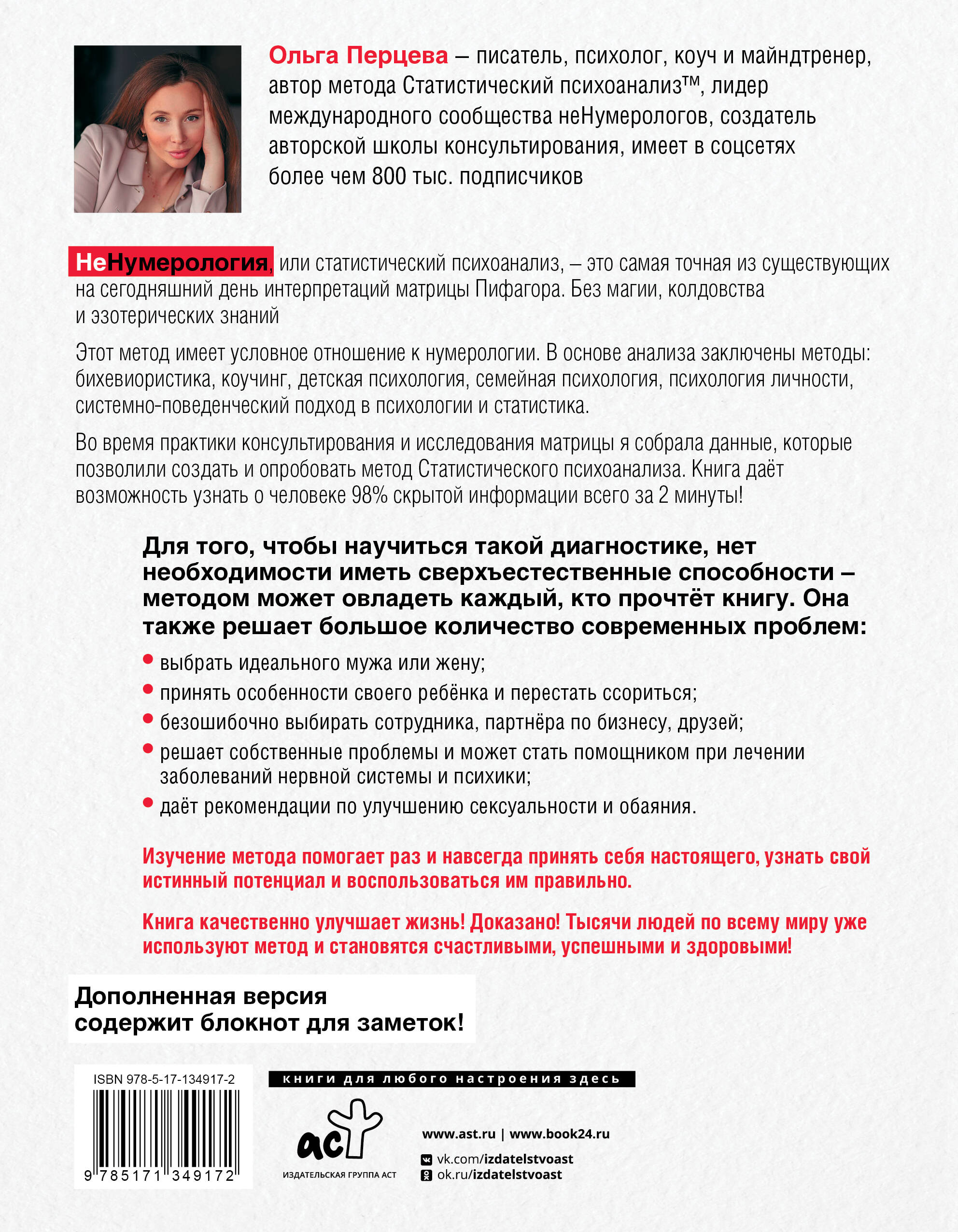 Ольга Перцева - писатель, психолог, коуч и майндтренер, автор метода Статистический психоанализ™, лидер международного сообщества неНумерологов, создатель авторской школы консультирования. Ведёт инстаграм @ne_numerolog с более чем 750 тыс. подписчиков.| Издательство | ИЗДАТЕЛЬСТВО "АСТ" |