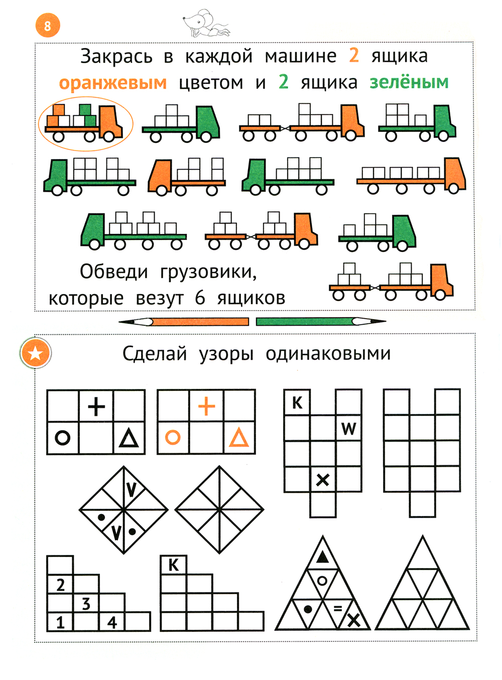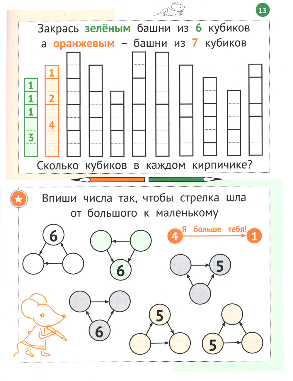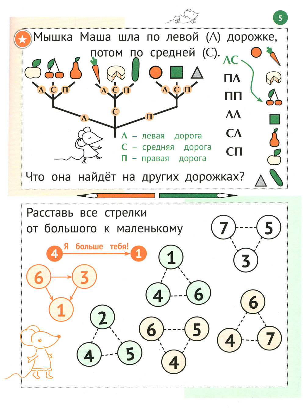 Тетрадки из серии «Необычная математика» - часть авторской программы «Математика вприпрыжку», и они призваны дополнить и разнообразить ваши занятия математикой с дошкольниками и учениками начальной школы. Важно помнить о том, что для детей дошкольного возраста куда важнее игровые задания, подвижные математические игры, работа с самым разнообразным счётным материалом, а не только задания на листочках. Детям в этом возрасте можно и нужно много считать на пальцах, складывать по образцу и по схеме разные картинки из кубиков, мозаики и счётных палочек, считать свои шаги и прыжки, и это куда важнее любых занятий по самым интересным тетрадкам. Эта тетрадка не повторяет, а дополняет и расширяет программу первого класса, но не за счёт увеличения диапазона чисел, а благодаря самым разнообразным заданиям, помогающим ребёнку увереннее ориентироваться в мире чисел и математических понятий. Задания тетрадки • тренируют логическое мышление; • объясняют в доступной ребёнку игровой форме такие математические понятия, как болыше/меньше, предыдущее/следующее число и т.п.; • учат узнавать количество предметов «в лицо» сразу, не пересчитывая по одному; • знакомят ребенка с симметрией, понятием координат точки (на примере адресов в многоэтажных домах).| Издательство | МЦНМО |