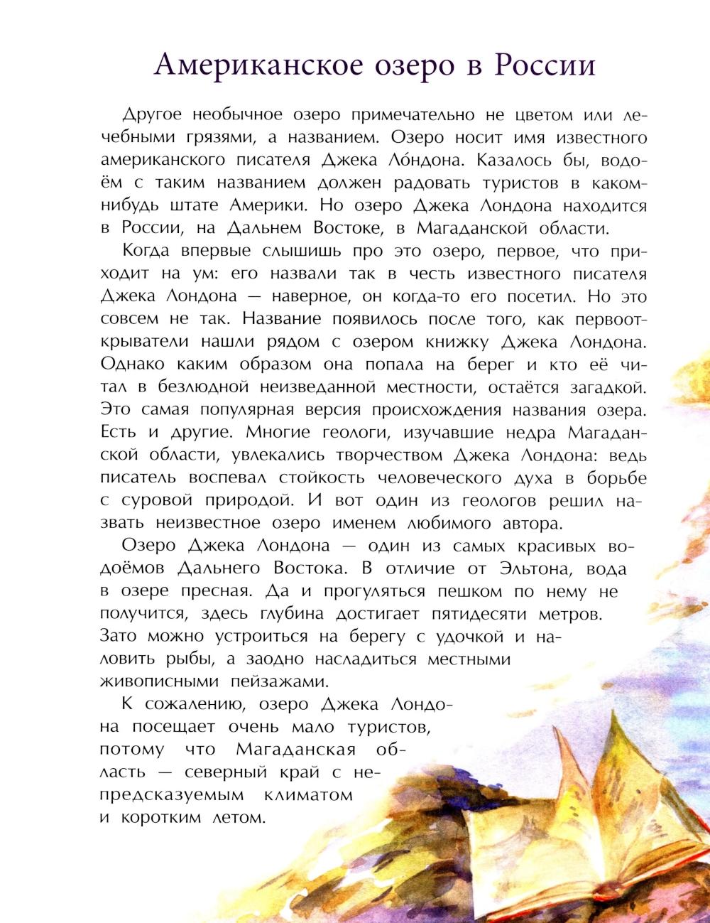 Россия - как сундук с сокровищами. Откроешь его - и можно бесконечно долго перебирать драгоценности: то пустыня среди таёжных лесов, то розовое озеро с соляными пляжами, то вулкан-матрёшка, то бухта с разноцветными стёклышками вместо песка. Самой толстой книги не хватит, чтобы рассказать обо всех удивительных местах нашей Родины. Но о некоторых из них мы узнаем прямо сейчас.| Издательство | Настя и Никита |