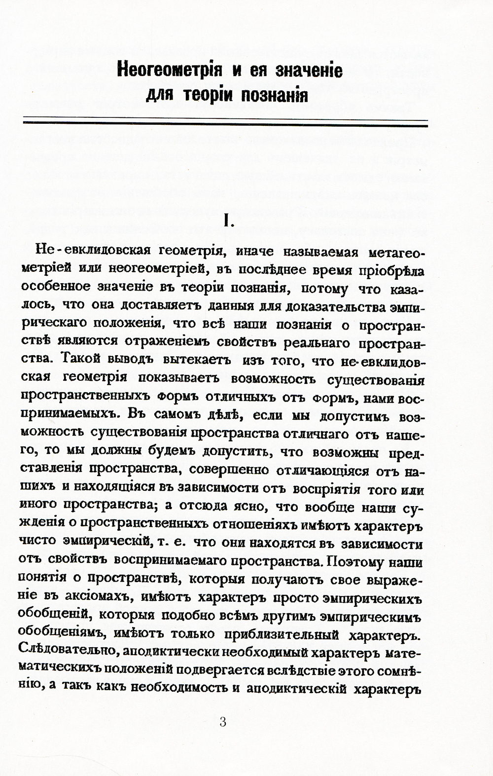 Аннотация: Неогеометрия и ее значение для теории познания. Об априорных элементах познания (понятие числа, времени, причинности, пространства)