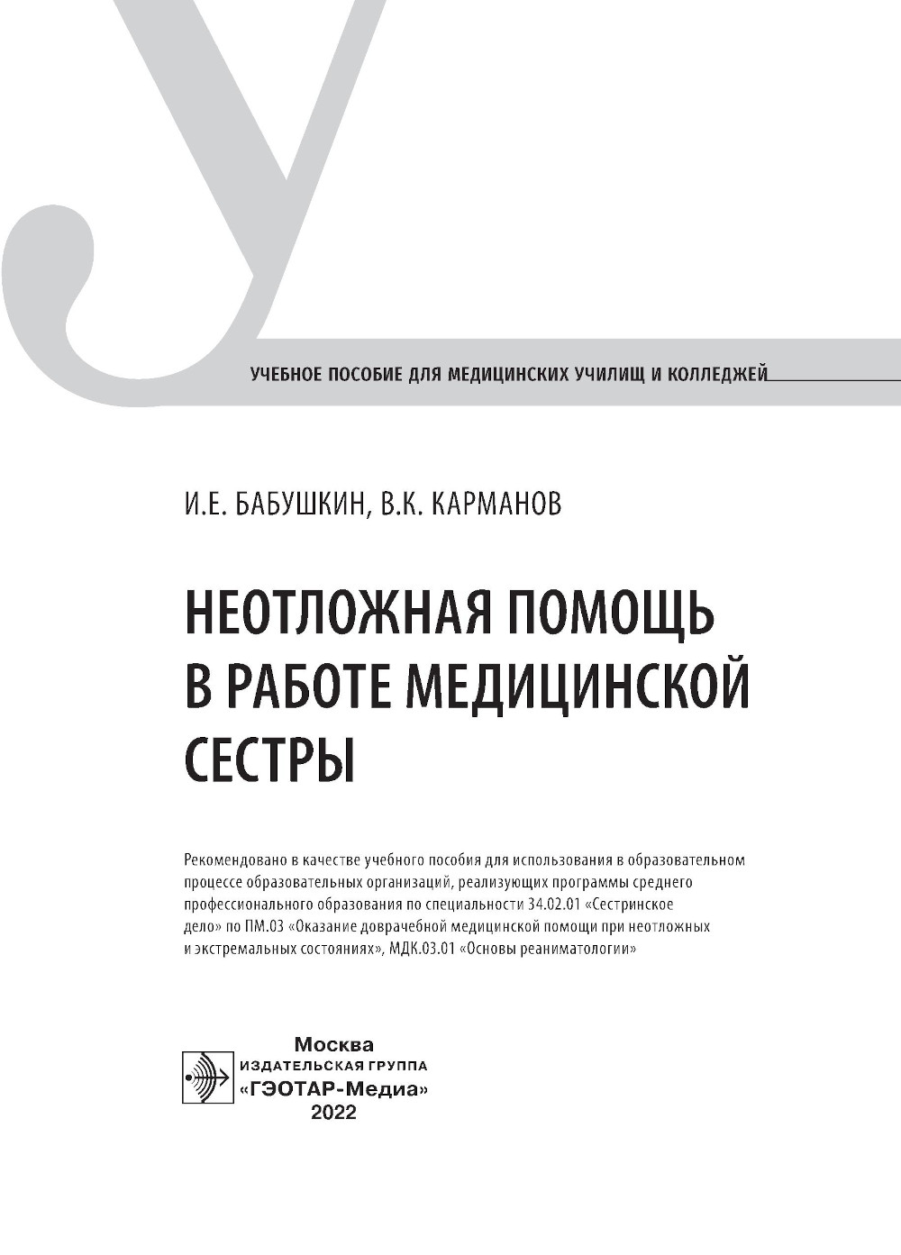 Аннотация: Неотложная помощь в работе медицинской сестры. Учебное пособие