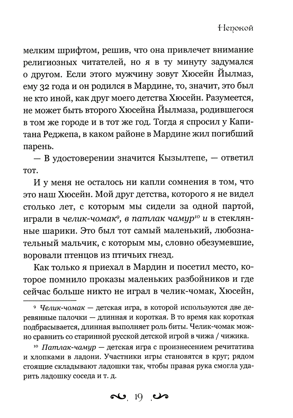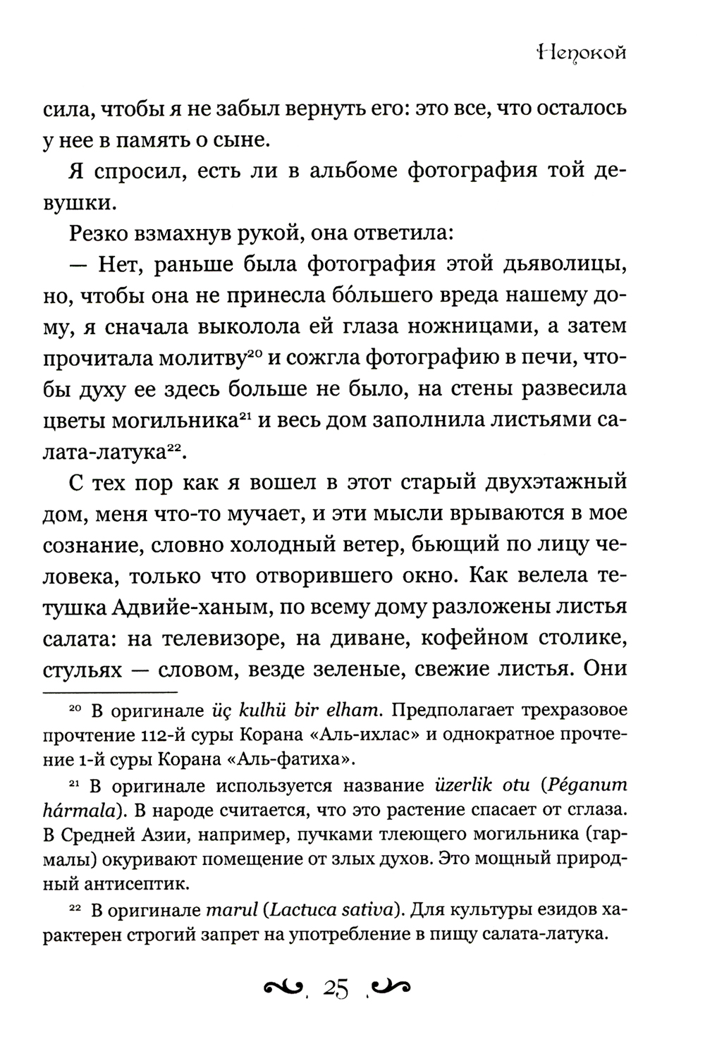 Исторический роман О.З. Ливанели «Непокой» основан на трагических событиях, развернувшихся на Ближнем Востоке в 2014 году, в результате которых тысячи человек, включая женщин и детей, стали жертвами насилия и чудовищной жестокости исламских террористов. В романе на фоне истории любви девушки-езидки Мелекназ и турецкого юноши Хюсейна, рассказанной его другом детства - стамбульским журналистом Ибрагимом, описывается социальная и духовная жизнь юго-восточных провинций Турции, вскрываются ключевые проблемы современного турецкого общества. Роман «Непокой» - поразительное по силе эмоционального воздействия реалистическое произведение, в котором на первом плане стоит человек, с необыкновенной глубиной высвечиваются его нравственные идеалы.| Издательство | Рипол Классик |