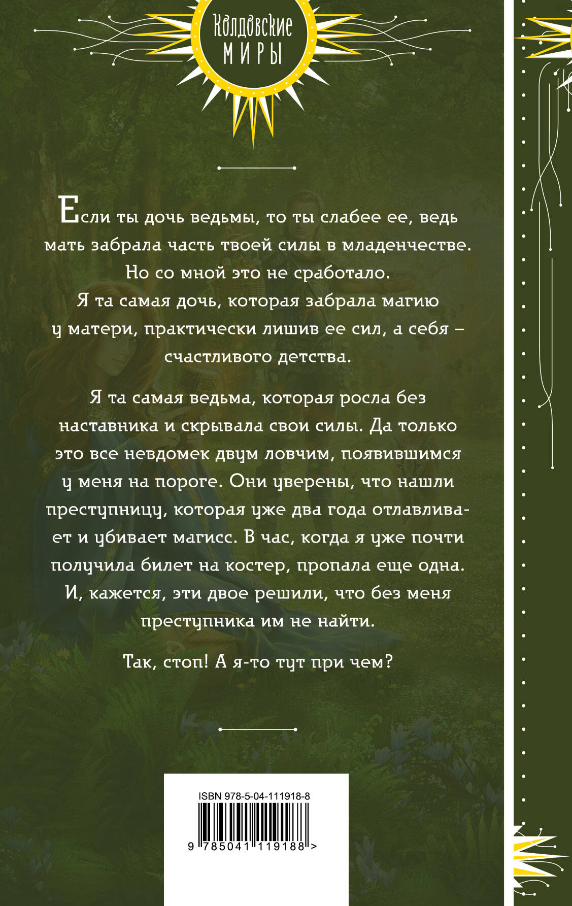 Если ты дочь ведьмы - то ты слабее нее, ведь мать забрала часть твоей силы в младенчестве. Но со мной это не сработало. Я та самая дочь, которая забрала магию у матери, практически лишив ее сил, а себя - счастливого детства. Я та самая ведьма, которая росла без наставника и скрывала свои силы. Да только это все невдомек двум ловчим, появившимся у меня на пороге. Они уверены, что нашли преступницу, которая уже два года отлавливает и убивает магисс. В час, когда я уже почти получила билет на костер, пропала еще одна. И, кажется, эти двое решили, что без меня преступника им не найти. Так, стоп! А я-то тут при чем?| Издательство | ООО "Издательство "Эксмо" |