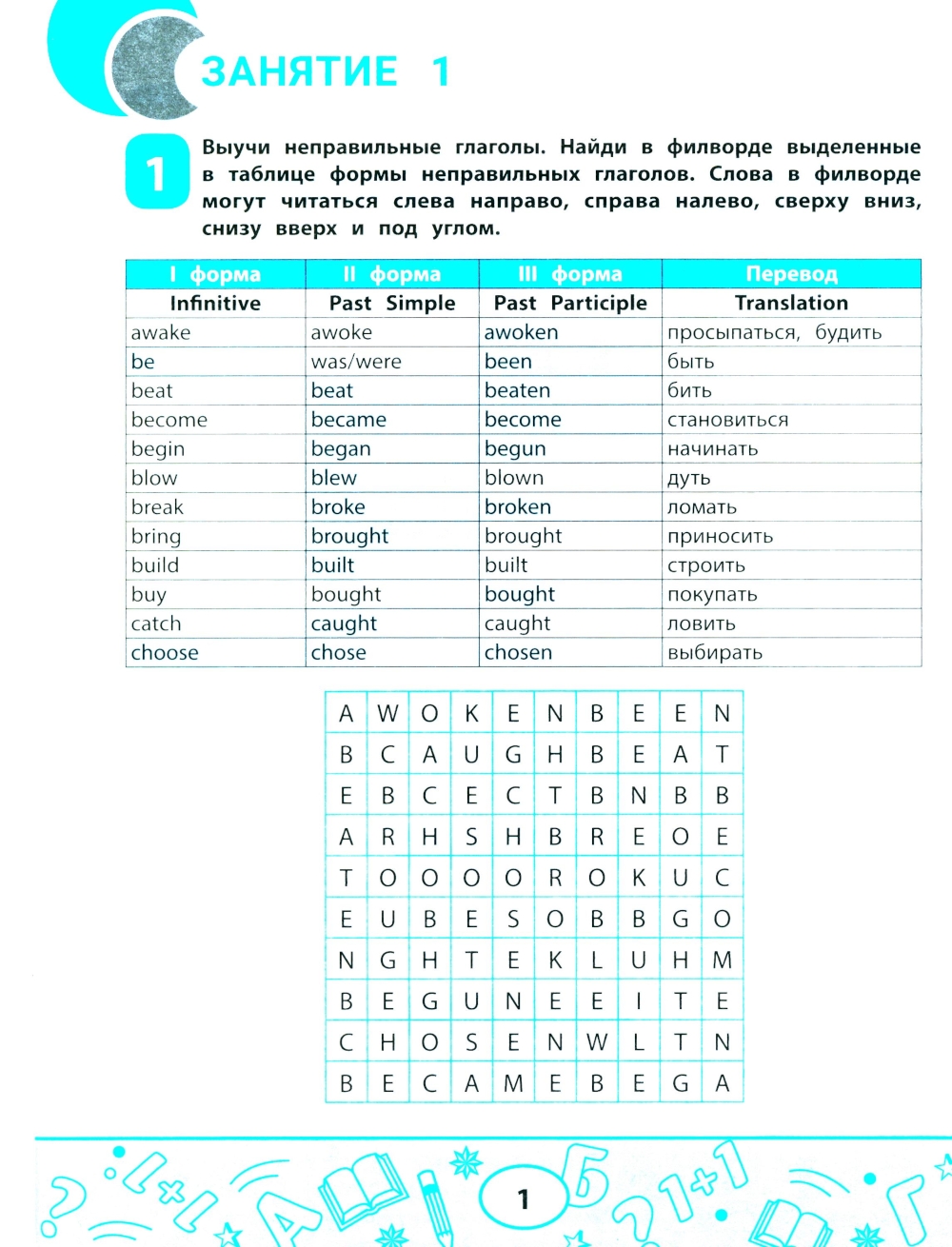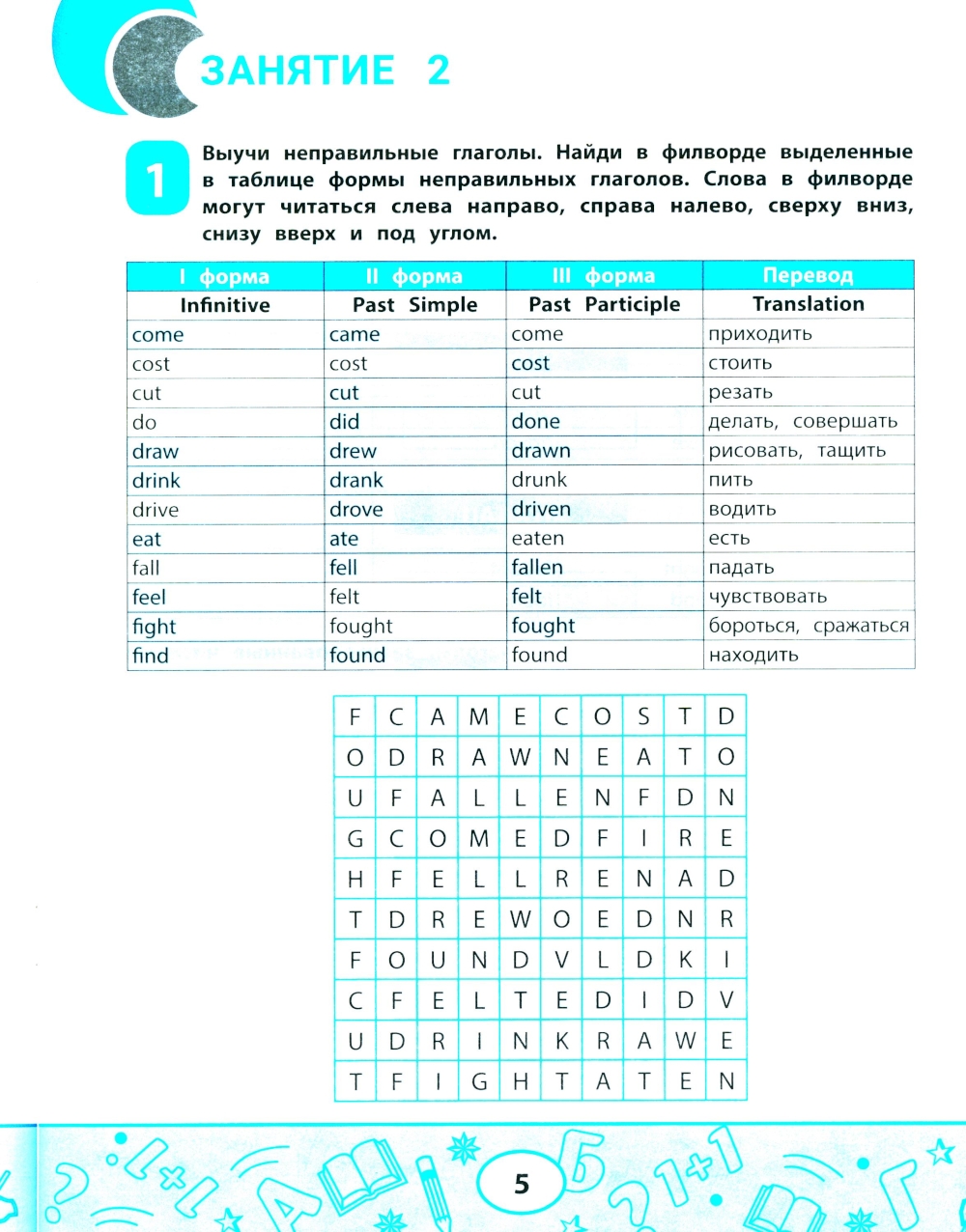 Аннотация: Неправильные глаголы английского языка: филворды, шифровки, таблицы