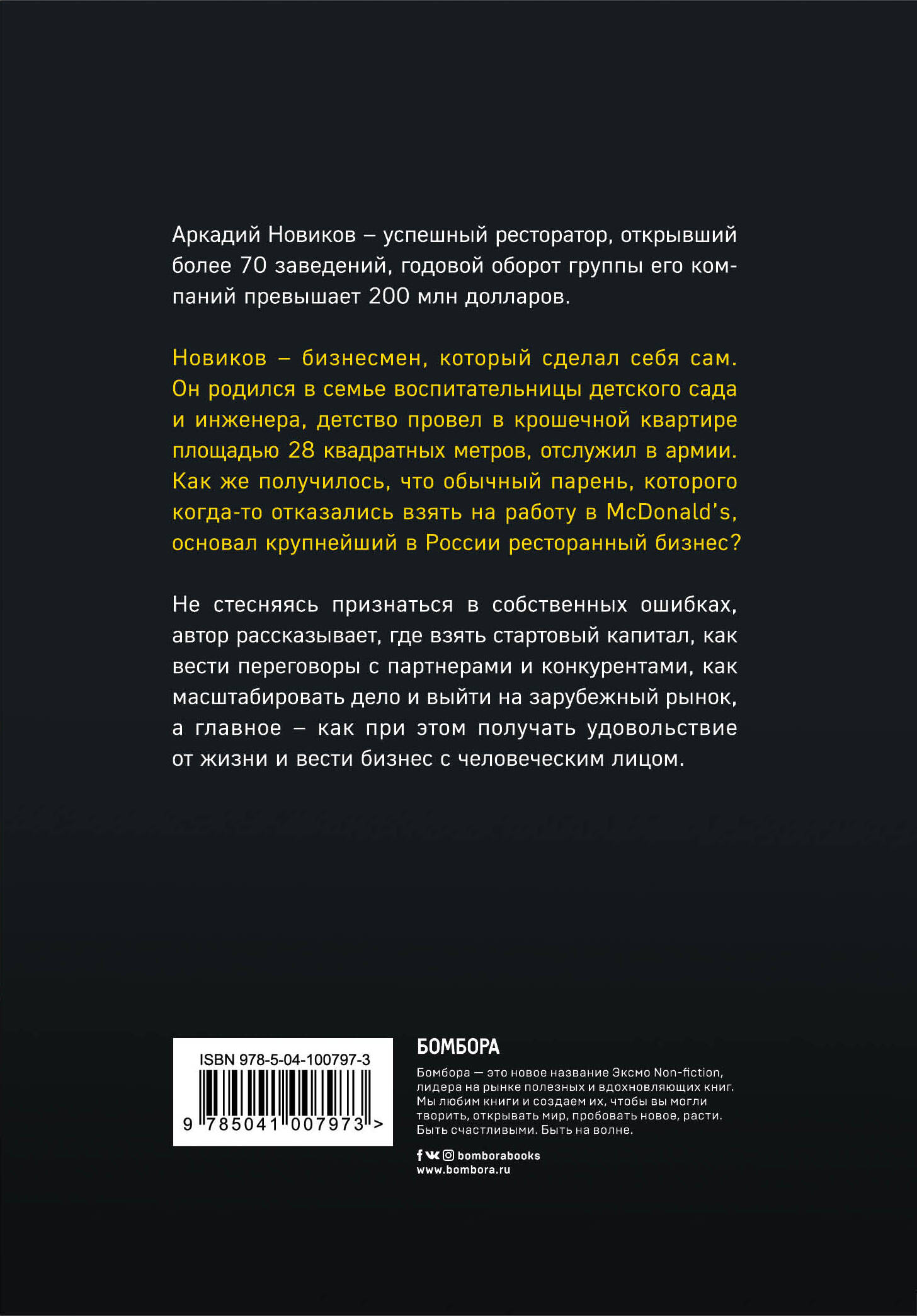 Аркадий Новиков - самый известный бизнесмен-ресторатор в России. За 25 лет реализовал более 70 успешных проектов в России и за рубежом, его рестораны посещают 15 млн человек в год. Практические советы и готовый бизнес-план от «неправильного бизнесмена».