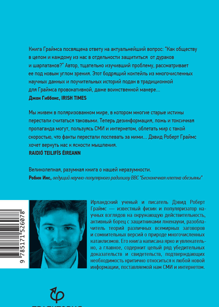 Книга, которая не только наглядно показывает, почему умение критически мыслить - жизненно необходимо современному человеку, но и весьма успешно учит, как развить это умение. Еще никогда борьба с лженаучными мифами не была такой захватывающей и информативной. Что такое "заблуждения нераспределенной середины" и как это заблуждение вызвало волну паники, базирующуюся на якобы доказанной связи излучения мобильных телефонов и возникновения раковых опухолей? Почему, даже несмотря на невероятное количество проверенных научных данных, несколько ошибочных заявлений и бездоказательных статей в газетах способны привести к настоящим трагедиям, как это случилось в начале двухтысячных годов в Великобритании, где в результате "антипрививочной волны" начались вспышки вирулентной болезни и реальные человеческие жертвы? Почему тактика "апелляции к природе", так популярная в альтернативной медицине, ошибочна? Почему все больше людей уверены, что прививки приводят к аутизму, а правительство скрывает буквально всё - от лекарства от рака до контактов с инопланетянами? В своей книге Дэвид Роберт Граймс не только рассказывает, как появляются самые вопиющие псевдонаучные теории, но и дает действенные рецепты, как отделить науку от дикого и безграмотного вымысла, который при этом кажется порой таким логичным и правдивым.| Издательство | ИЗДАТЕЛЬСТВО "АСТ" |
