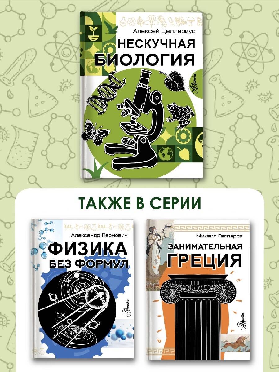 "Нескучная биология" биолога и популяризатора науки Алексея Целлариуса просто и занимательно расскажет о том, почему наша планета особенная, из чего состоит все живое на земле, как растения и животные стали сухопутными, что такое эволюция и естественный отбор, зачем павлину хвост, а крокодилу зубы… и еще о многом-многом другом, что изучают в школе на уроках биологии. Вы узнаете, какие организмы называют прокариотами, а какие эукариотами, почему грибы выделяют в особое царство, как на протяжении миллионов лет развивались растения и животные. Будет интересно! Для среднего школьного возраста.| Издательство | Издательство "АСТ" |