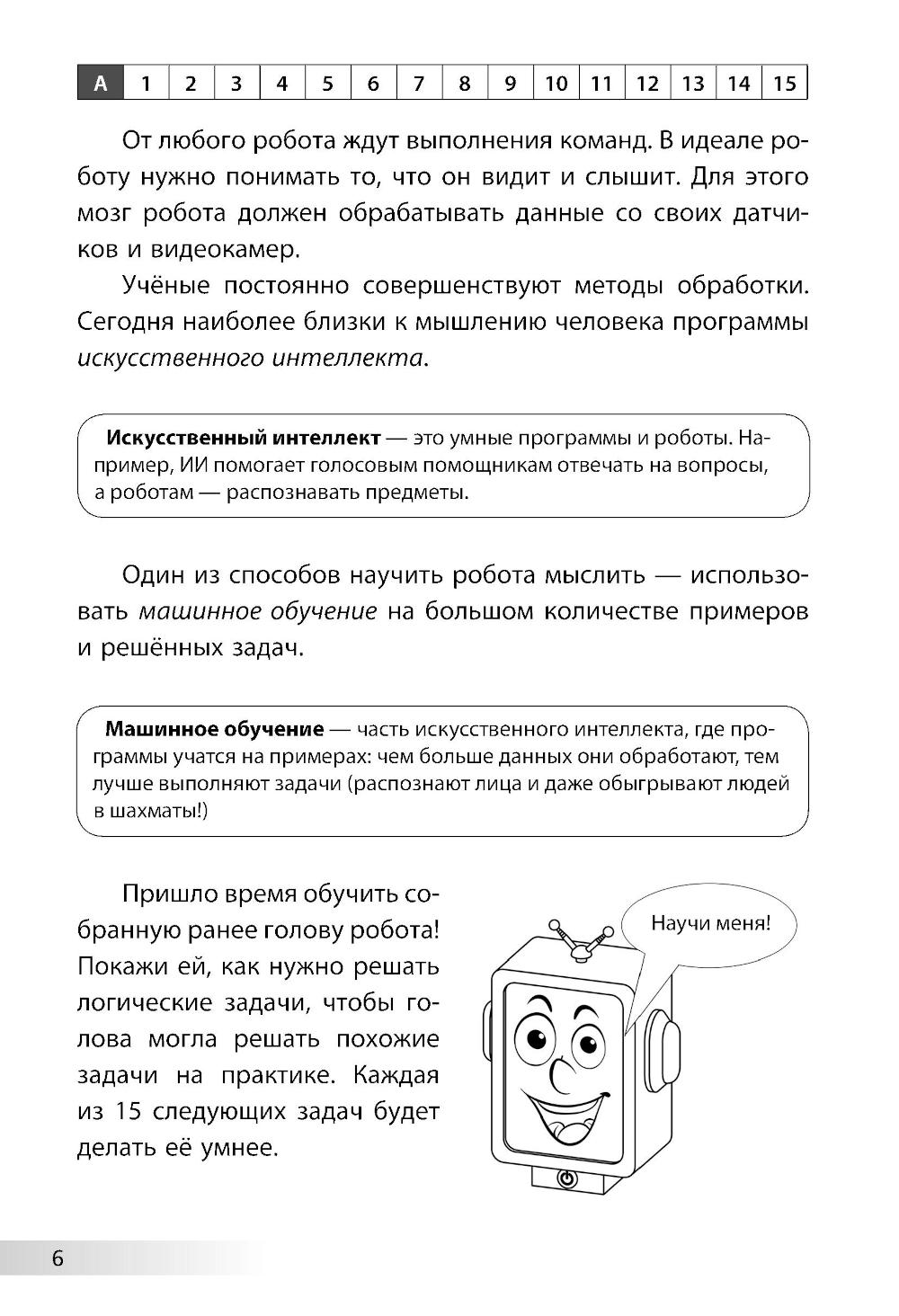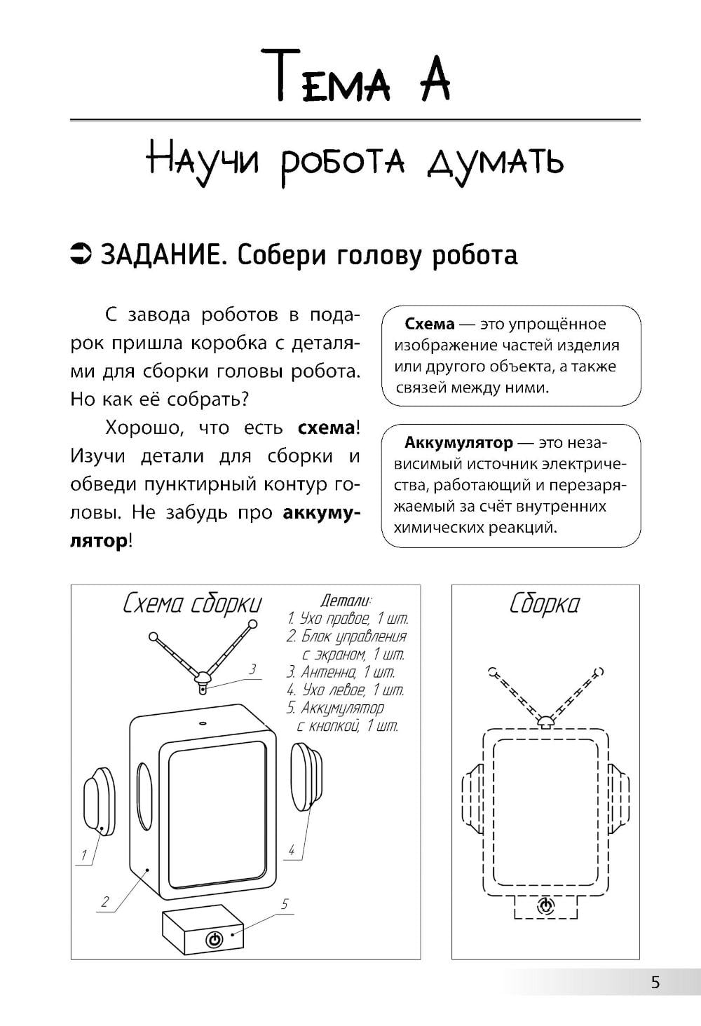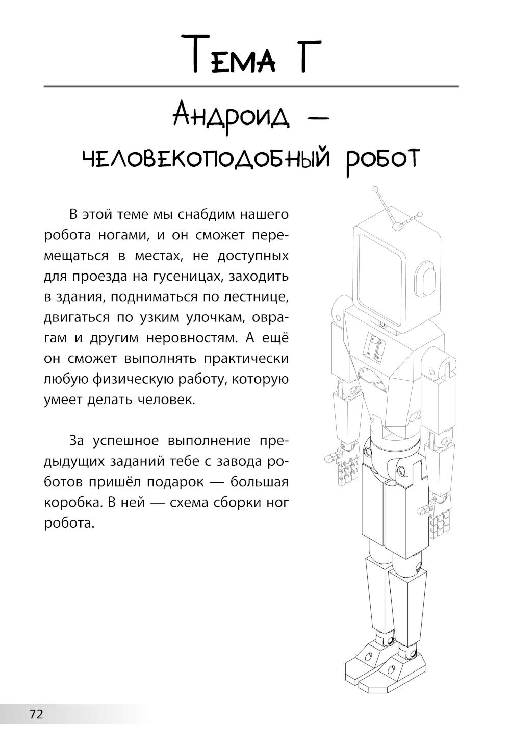 Книга содержит разнообразные занимательные задания, связанные с робототехникой, и способствует развитию логики, памяти, внимания у детей от 10 до 12 лет. Она поможет им содержательно провести свободное время и узнать много интересного из мира роботов. Обучение построено как увлекательная игра: читатель начинает с получения в подарок от завода коробки с деталями для будущего робота. Решая логические задачи и головоломки, юный конструктор поэтапно развивает своего «железного питомца» - собирает ему голову, ставит на гусеницы, добавляет руки и, наконец, ноги, превращая робота в настоящего андроида. Авторские рисунки на каждом развороте создают живой и понятный мир, где робот растёт и умнеет на глазах у читателя. За верные решения читатель получает пароли для скачивания секретных файлов с бонусными заданиями, цветными иллюстрациями и историями из области робототехники.| Издательство | BHV(БХВ) |