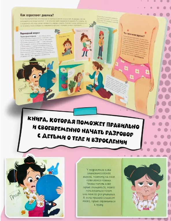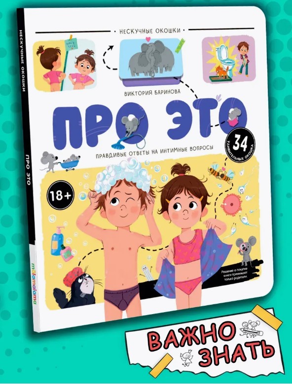 Книжка с окошками «Про это: правдивые ответы на интимные вопросы» - путеводитель по самым деликатным вопросам о человеческом теле! Через яркие иллюстрации и доступный язык книга поможет легко освоить сложные темы, такие как различия между мальчиками и девочками, особенности их физиологии и взросления и многое другое. Ребёнок узнает о том, как важно заботиться о своём теле, уважать себя и окружающих, а также как правильно вести себя в различных жизненных ситуациях. А увлекательные окошки сделают изучение важных вопросов ещё более доступным. Читайте книги от торговой марки Malamalama вместе с ребёнком - проводите время интересно и с пользой!