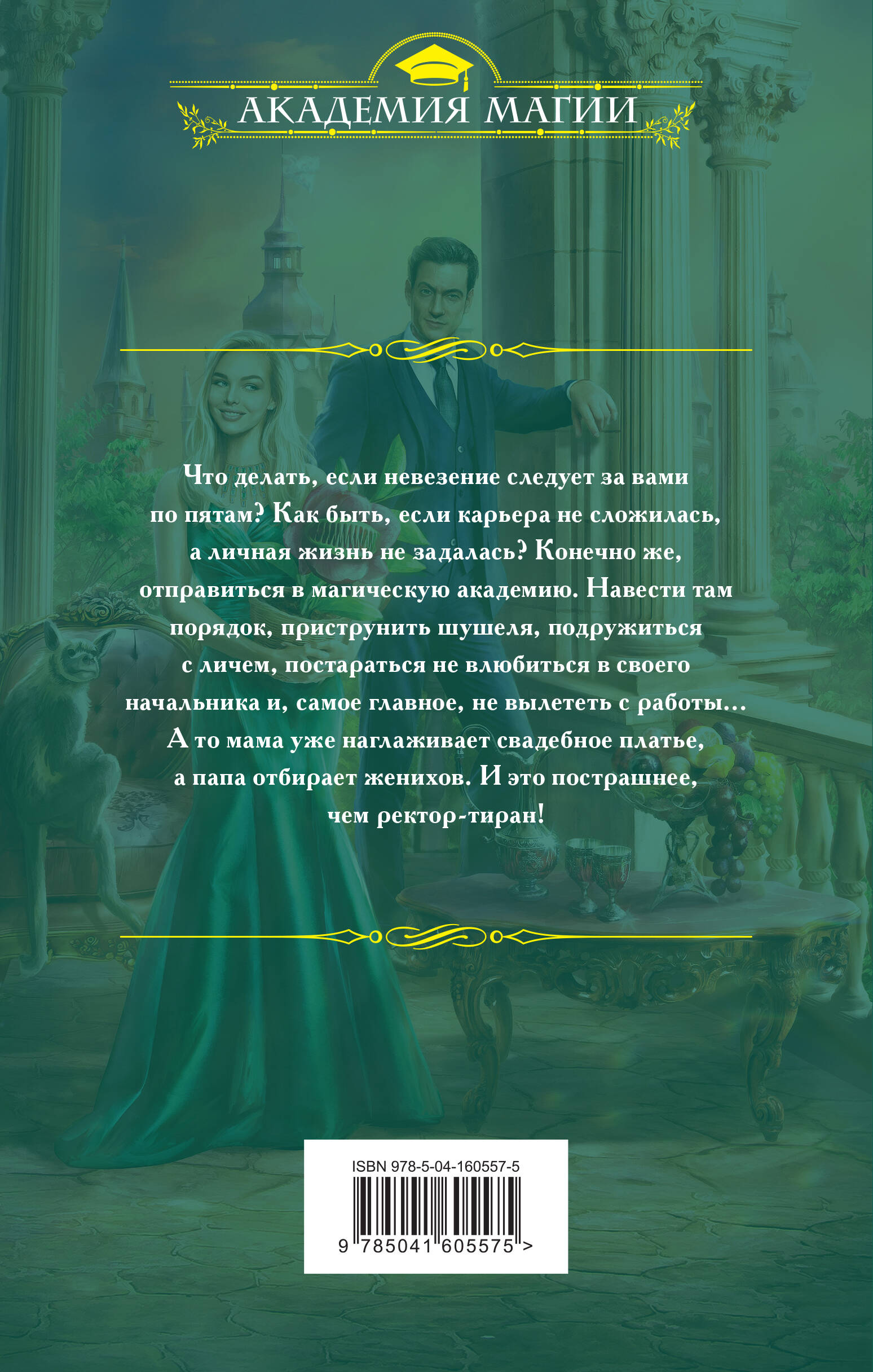 Что делать, если невезение следует за вами по пятам? Как быть, если карьера не сложилась, а личная жизнь не задалась? Конечно же, отправиться в магическую академию. Навести там порядок, приструнить шушеля, подружиться с личем, постараться не влюбиться в своего начальника и, самое главное, не вылететь с работы… А то мама уже наглаживает свадебное платье, а папа отбирает женихов. И это пострашнее, чем ректор-тиран! Пять причин для покупки: 1. Взрыв хорошего настроения от Анны Одуваловой! 2. Тираны тоже достойны любви. 3. Веселая история с хорошим концом от любимого автора. 4. Очаровательные фамильяры и море приключений. 5. Возможность погрузиться в волшебный мир магии, любви и рабочих будней магической академии.| Издательство | ООО "Издательство "Эксмо" |