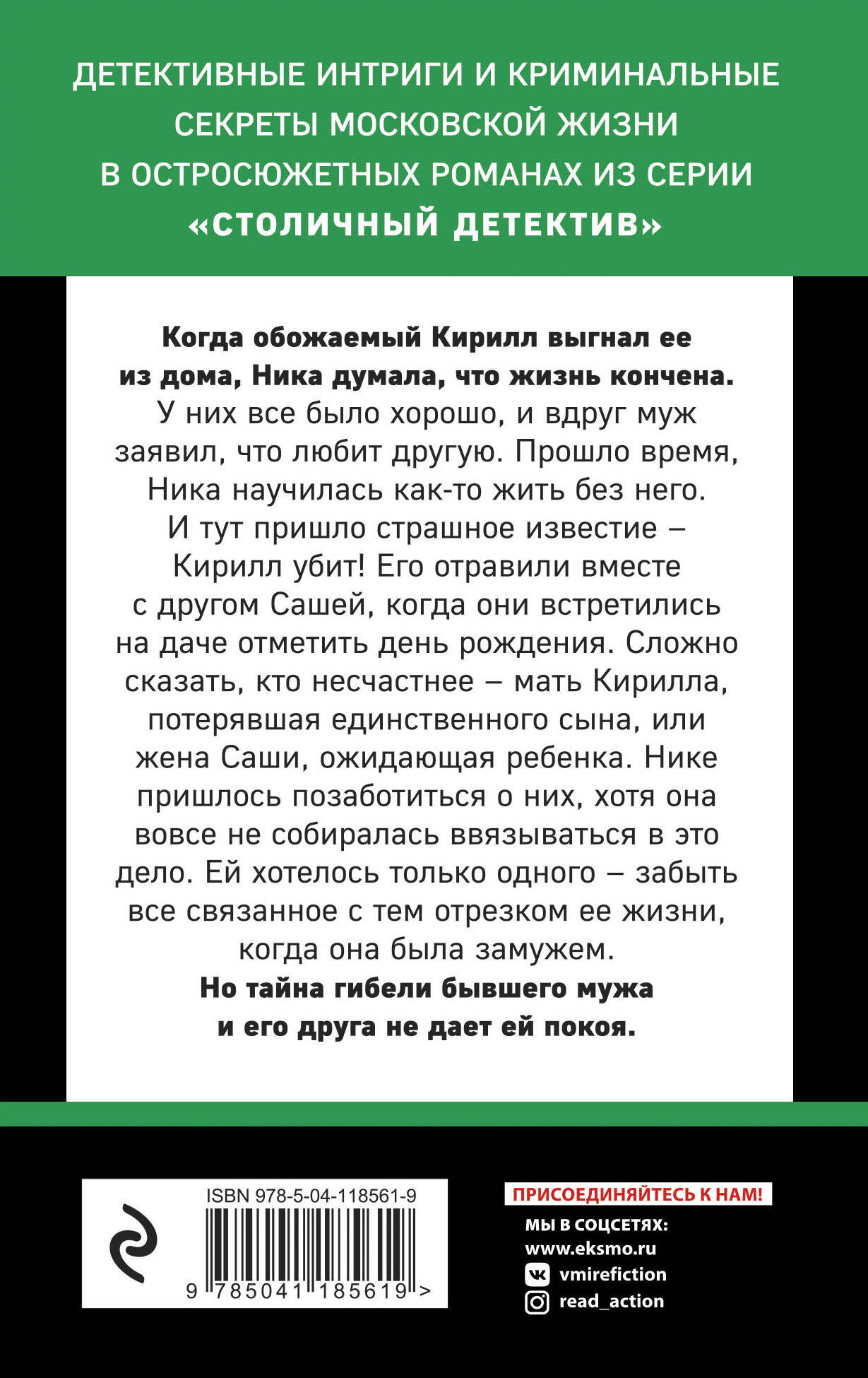 Когда обожаемый Кирилл выгнал ее из дома, Ника думала, что жизнь кончена. У них все было хорошо, и вдруг муж заявил, что любит другую. Прошло время, Ника научилась как-то жить без него. И тут пришло страшное известие - Кирилл убит! Его отравили вместе с другом Сашей, когда они встретились на даче отметить день рождения. Сложно сказать, кто несчастнее - мать Кирилла, потерявшая единственного сына, или жена Саши, ожидающая ребенка. Нике пришлось позаботиться о них, хотя она вовсе не собиралась ввязываться в это дело. Ей хотелось только одного - забыть все связанное с тем отрезком ее жизни, когда она была замужем. Но тайна гибели бывшего мужа и его друга не дает ей покоя. Татьяна Устинова рекомендует: «Удивительно, но в книгах Евгении Горской угадывается настроение больших русских романов. Она умещает в детектив современную энциклопедию разнообразнейших губительных страстей, созидательных любовей и ярких, живых, разноголосых героев. Получается не только интересно и зажигательно, но еще и очень по-настоящему - ровно настолько, чтобы захотелось поверить в эту историю. Горская ловко и умеючи держит читателя в напряжении: тебе иногда страшно, иногда смешно, иногда будто бы совсем безнадежно, но в конечном итоге понимаешь: все будет хорошо!»| Издательство | ООО "Издательство "Эксмо" |