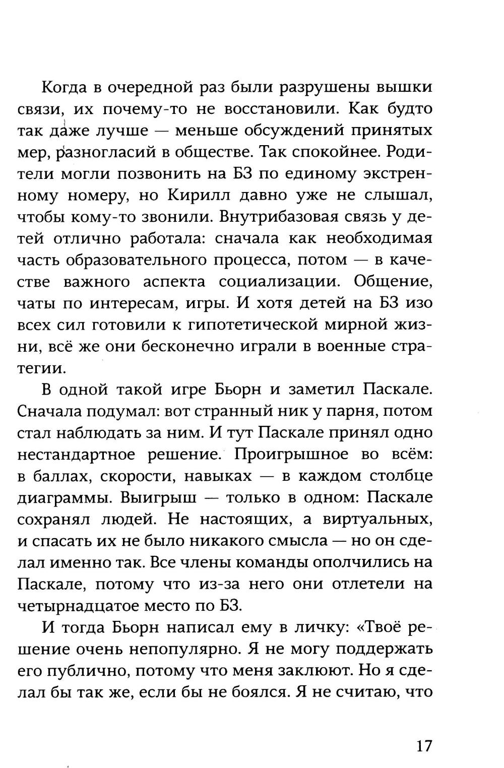 Договор о защите детей был мгновенно, буквально в два месяца подготовлен и подписан: детей надо оградить от всех бед, что творятся в мире, и воспитать так, чтобы они смогли разрешить мировые конфликты. Дети - это будущее. И вот уже построены Базы защиты детей, отгороженные от остального мира. Все продумано. Утверждены самые прогрессивные программы обучения. Дети привыкли к жизни на Базе. Родители могли позвонить на Базу по единому экстренному номеру. Но почему-то не звонили. Но осталось ли что-нибудь там за бетонными заборами? И в какой мир отправятся дети, когда им исполнится восемнадцать? И почему так красиво море там, куда нельзя выходить? И почему туда нельзя?| Издательство | Самокат |