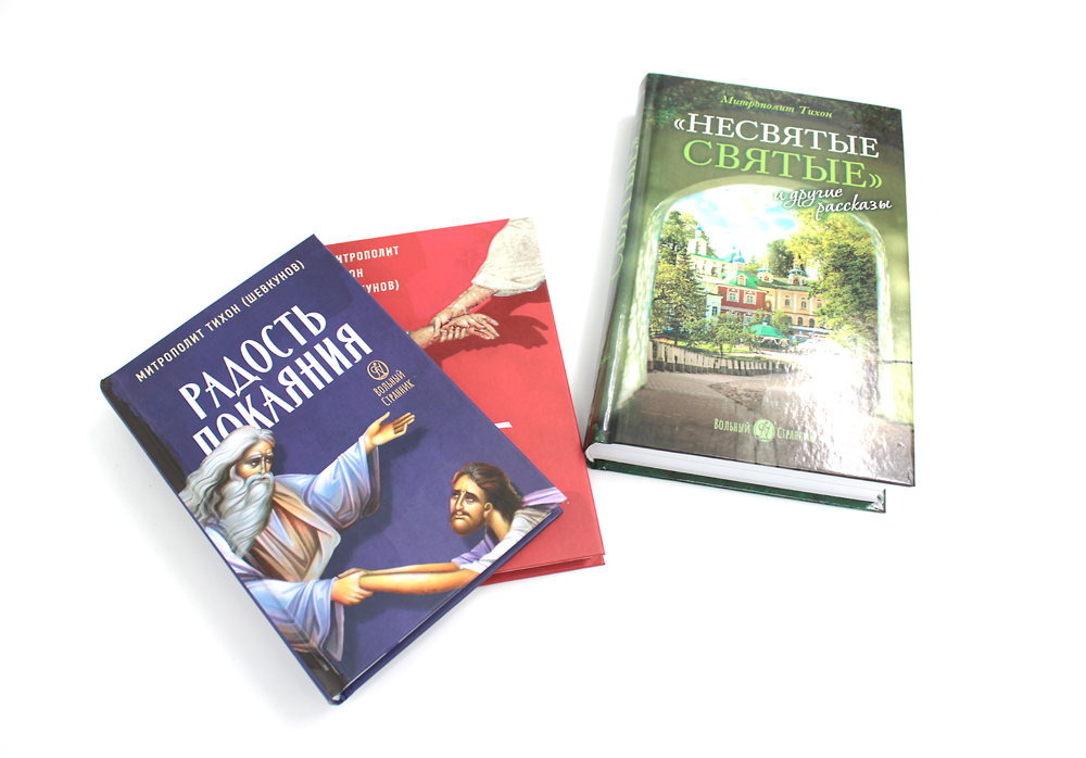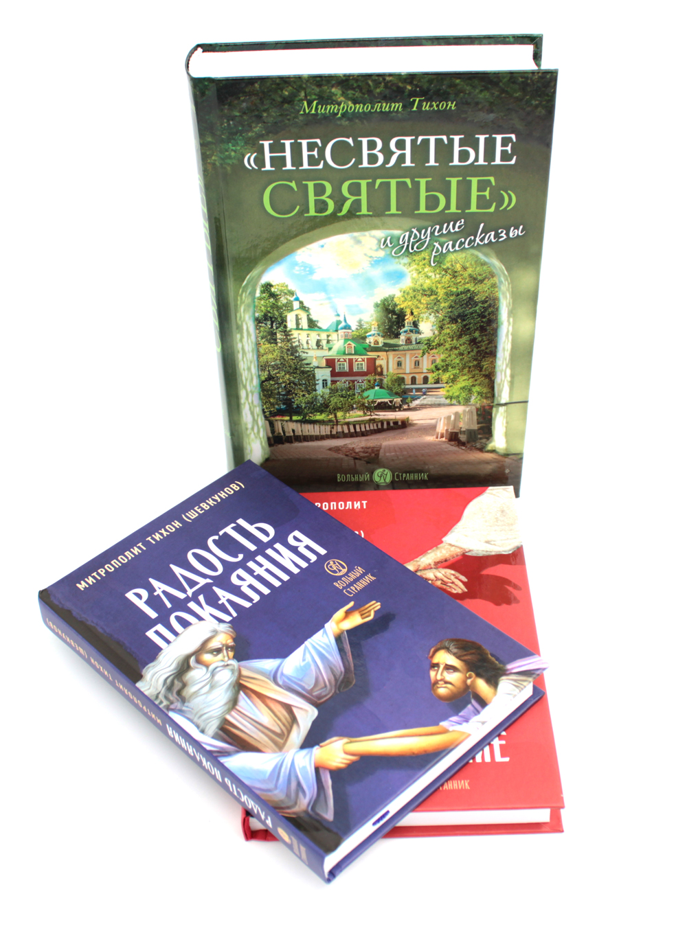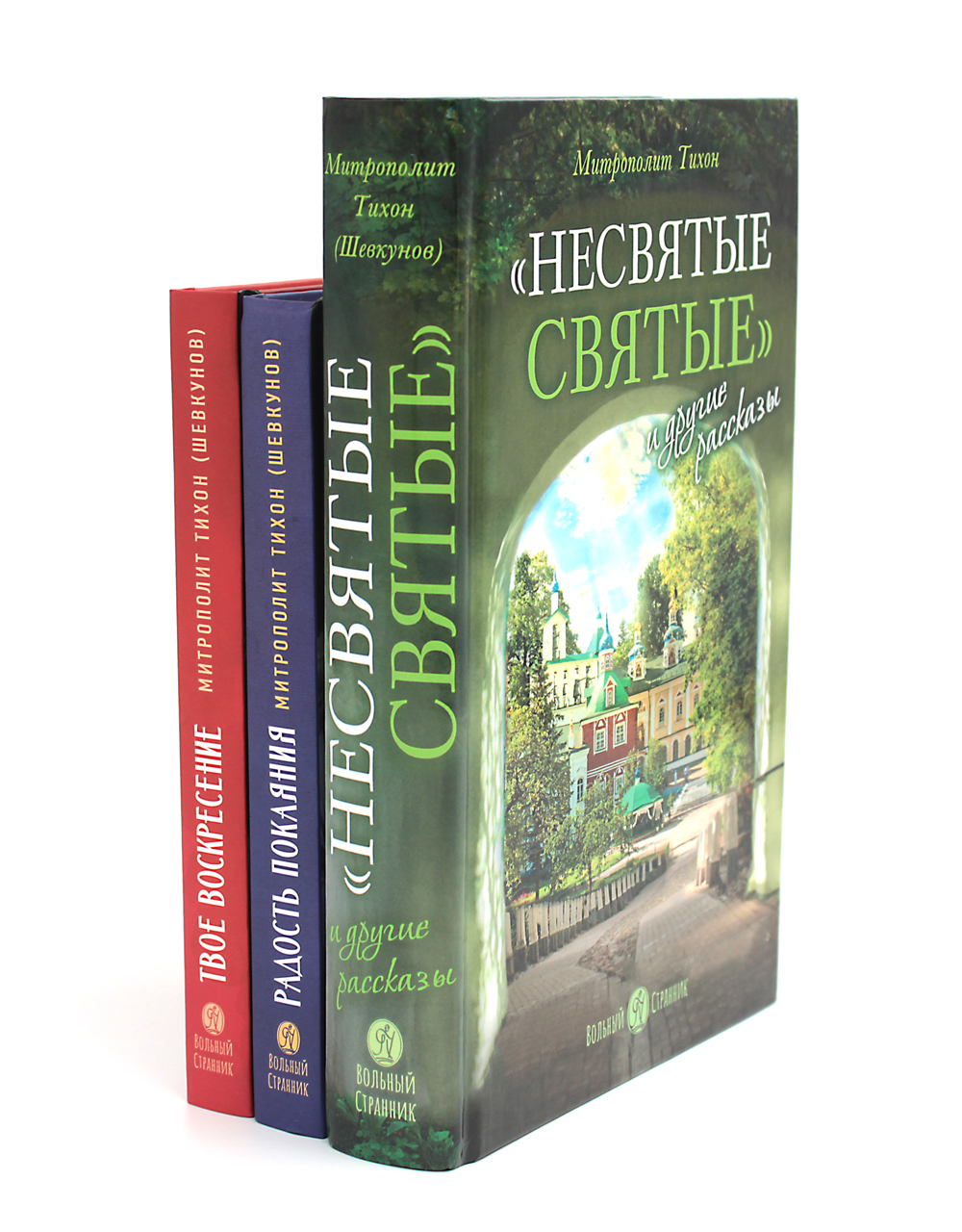 Комплект состоит из трех книг митрополита Тихона (Шевкунова). О книге «Несвятые святые и другие рассказы»: Один подвижник как-то сказал, что всякий православный христианин может поведать свое Евангелие, свою Радостную Весть о встрече с Богом. Конечно, никто не сравнивает такие свидетельства с книгами апостолов, своими глазами видевших Сына Божия, жившего на земле. И всё же мы, хоть и немощные, грешные, но Его ученики, и нет на свете ничего более прекрасного, чем созерцание поразительных действий Промысла Спасителя о нашем мире. В «Радости покаяния» речь идет о том, что пост - время свободы и радости духовной, время освобождения от греховных привычек - всего того лишнего, бесполезного, чуждого человеческой душе, но так прочно укоренившегося в ней. Церковь каждый год заботливо подводит нас к времени Великого поста и так же бережно ведет нас день за днем в течение этого спасительного времени: от греха - к покаянию, от духовной смерти - к воскресению души. В основе этой книги - проповеди и выступления митрополита Псковского и Порховского Тихона (Шевкунова). В них читатель найдет важные мысли о смысле человеческой жизни, о том, чего Бог ожидает от каждого из нас, о Промысле Божием, о подготовке и должном проведении великопостного времени, о покаянии и хранении себя от греха, о молитве. И о смирении, без которого все, даже самые суровые, подвиги не принесут пользы душе, без которого не сможет быть достигнута главная цель жизни христианина - единение с Богом. Новая книга митрополита Тихона (Шевкунова) «Твое Воскресение» посвящена величайшему событию, перевернувшему всю историю человечества, - Воскресению Христову. Вместе с автором и всей Церковью читатель сможет пройти путь от Светлого Христова Воскресения до дня Святой Троицы и отследить, как распространялась по Земле эта величайшая радость: от Сионской горницы до сердца каждого из нас. Речь пойдет и о вере апостола Фомы, и о смиренной любви Жен Мироносиц, об исцелении расслабленных наших душ, о простоте самарянки, которая всем сердцем искала Бога и обрела источник вечной жизни, о мужестве и мудрости слепорожденного. Вместе переживем и Вознесение Господне, отпразднуем день рождения Церкви - праздник Святой Троицы, вспомним схождение на апостолов Святого Духа Божия. Основанные на многовековом опыте Церкви и святых отцов объяснения владыки Тихона - лаконичные и живые, актуальные и современные. Размышления о столь важных понятиях христианской жизни интересны не только в пасхальный период, но полезны для чтения каждый день.| Издательство | Вольный Странник |