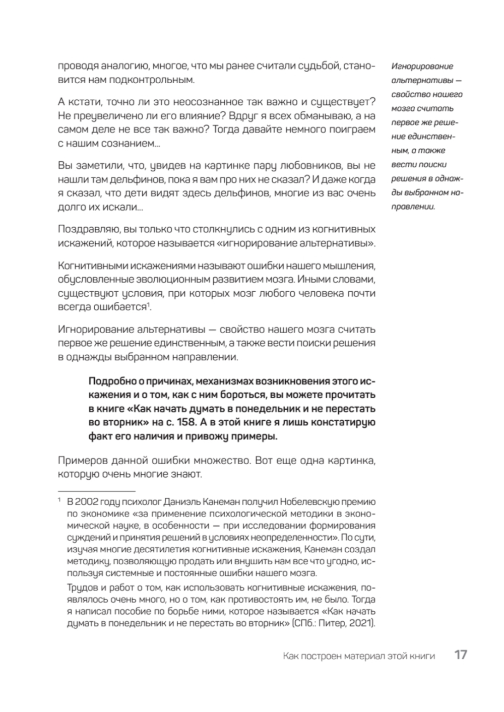 Можно ли поверить в то, что кто-то сознательно выберет ожирение, одышку, проблемы с потенцией и самооценкой, диабет и сердечный приступ? А может быть кто-то мечтает о депрессии, неврозе, отвратительных отношениях в браке и ненавистной работе? Вряд ли. Так почему же миллионы людей не могут всего этого избежать, снова и снова наступая на те же грабли? Ключ к решению проблем - не в сложных технологиях, не в силе воли и не в простых решениях. Он - в понимании механизма работы нашей психики и мыслительного аппарата. Более десяти лет я помогаю людям менять свою жизнь, брать под контроль то, что они раньше называли судьбой и злым роком. И на страницах этой книги я рассказываю о функционировании нашего мозга доступно, но в то же время без опасных и вредных упрощений. Получив знания, вы научитесь контролировать то, что раньше считали судьбой, и улучшите все аспекты вашей жизни. Готовы? Давайте начнем!| Издательство | Питер |