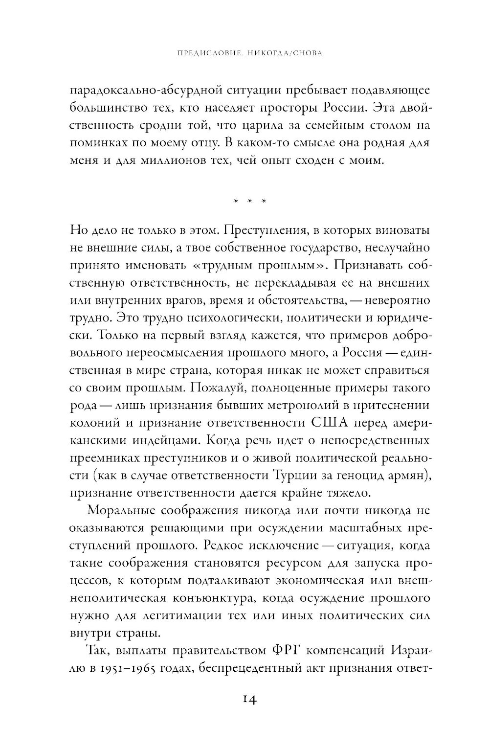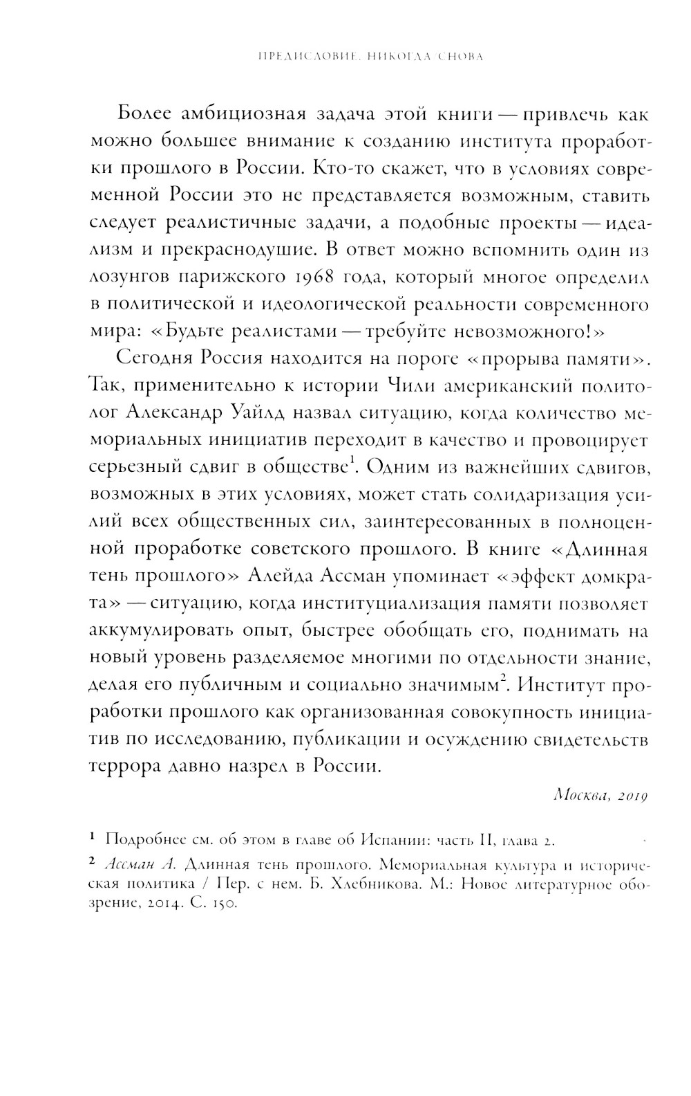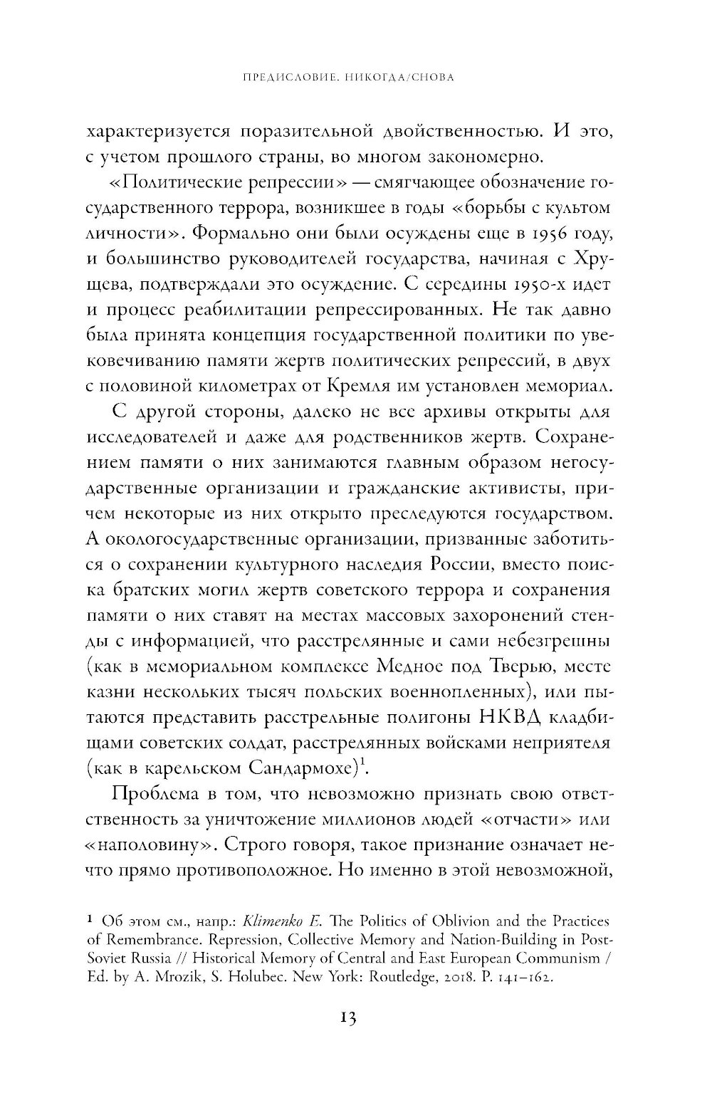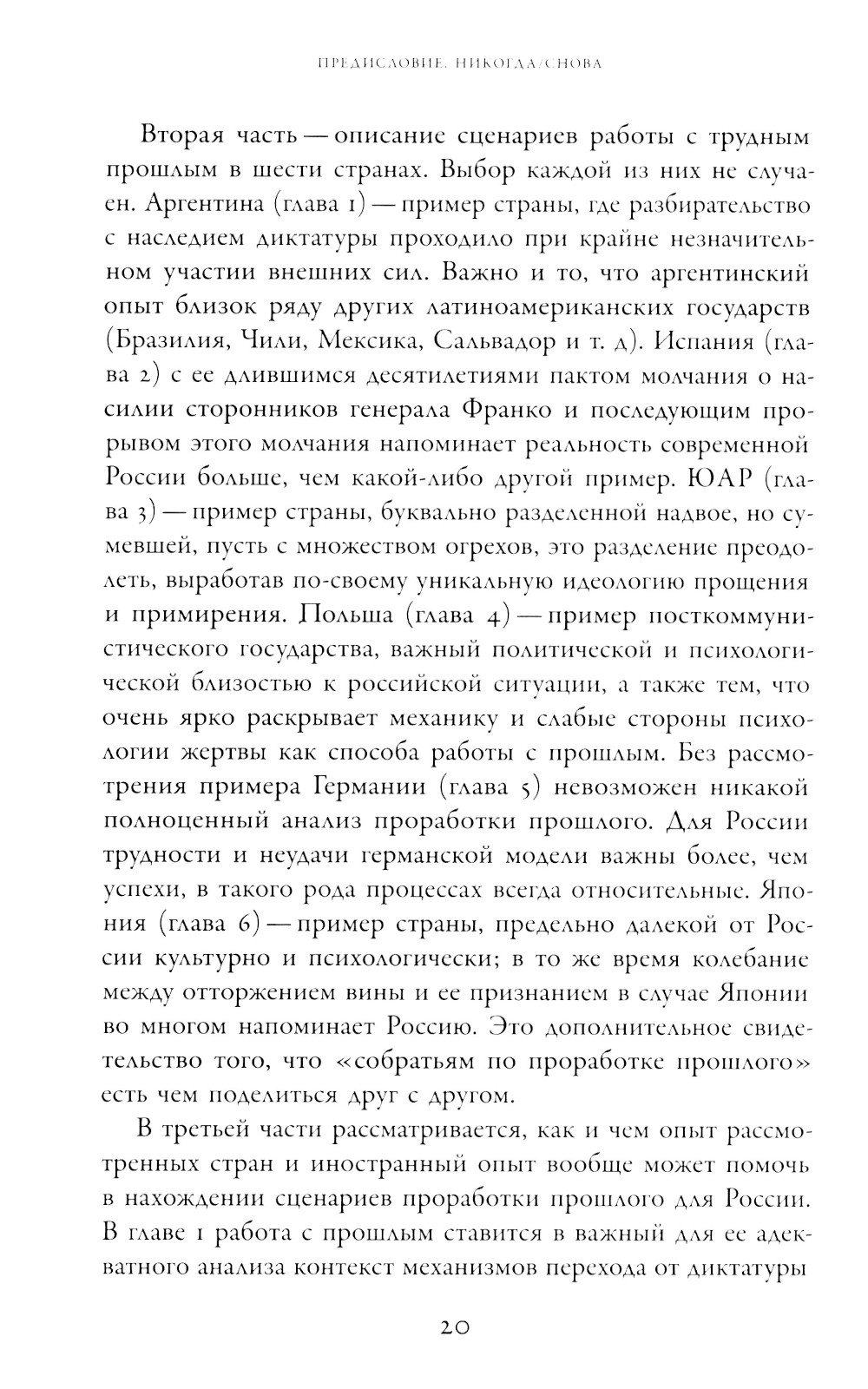 Преступлениям советского времени в России до сих пор не дана значимая для всего общества юридическая и этическая оценка. Отсутствие такой оценки сталинского государственного террора и советского тоталитарного прошлого препятствует тому, чтобы современная Россия распрощалась с этим наследием. Пока все сограждане не примут на себя ответственность за прошлое, оно останется незавершенным и будет препятствовать построению современной демократии. За последние десятилетия путь от диктатуры к демократии проделало множество стран, выработав богатый опыт проработки травматического прошлого ХX века, который в России почти не известен. В книге впервые на русском языке описаны ключевые модели работы с памятью о государственных преступлениях и проработки трудного прошлого, практикуемые в других странах, предложены стратегии адаптации этих моделей к условиям современной России.| Издательство | Новое литературное обозрение |