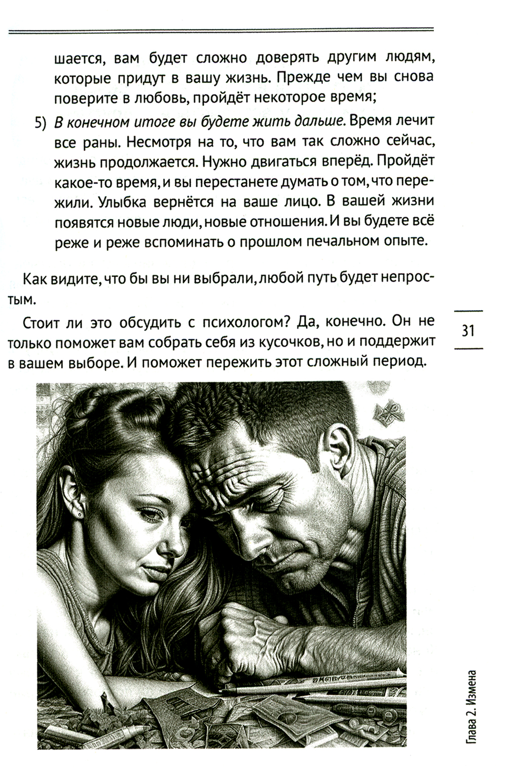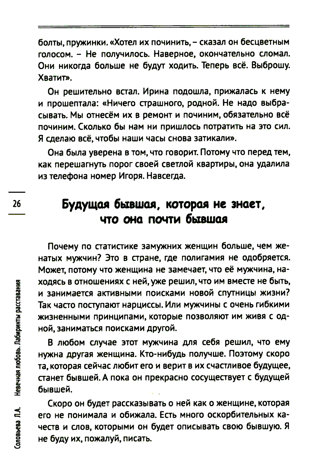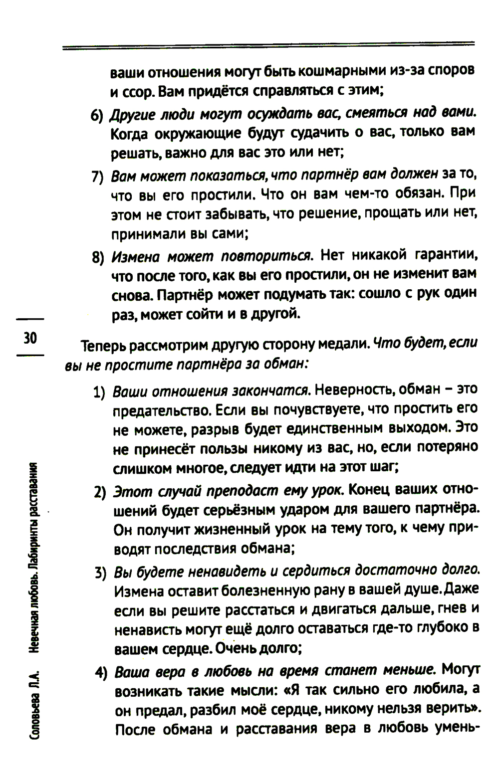Расстаться или остаться? Иногда приходится делать непростой выбор. Как сделать выбор и как справляться с последствиями этого выбора. У вас в руках сборник увлекательных историй и интересных упражнении, которые помогут тем, кто сейчас оказался на распутье. Эта книга поможет вам найти свою собственную силу и мудрость, чтобы преодолеть сложности и найти гармонию в своей личной жизни и отношениях. Вы погрузитесь в мир практических упражнений, историй успеха и научных исследований, чтобы открыть для себя новые возможности. Это обязательная книга для тех, кто пережил боль и неопределенность разрыва и ищет эмпатичный подход к процессу выздоровления. Автор книги, психологе более чем 30-летним стажем, помогла многим людям, оказавшимся в непростой жизненной ситуации. Опыт, знания и мысли, изложенные в книге, помогут вам справиться с трудностями, пережить это безрадостное событие и получить шанс начать новую счастливую жизнь.