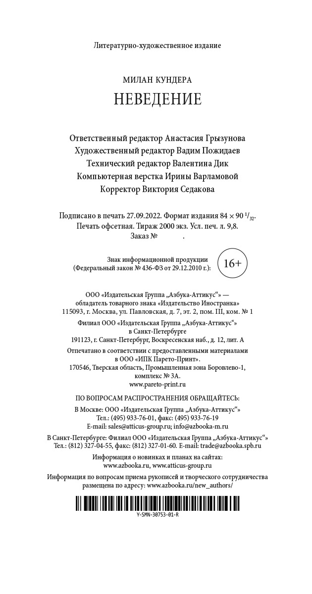 Возвращение - один из основных сюжетов мировой литературы, и всякая одиссея развивается предсказуемо... впрочем, не всегда. Герои романа одного из крупнейших писателей современности Милана Кундеры «Неведение» возвращаются в Чехию после эмиграции - после многих лет тягот, счастья, потерь, компромиссов, новых переживаний и воспоминаний, которые непостижимы и не интересны никому на родине. Как работает память? Из чего строятся надежды? Что такое подлинная честность? Кто возвращается к Пенелопе и знает ли она человека, который к ней вернулся? Те, кто уехал; те, кто повстречался им в пути; те, кто остался, - Кундера вглядывается в человеческие судьбы с беспримерной проницательностью и талантом к сочувственному пониманию.| Издательство | Иностранка |