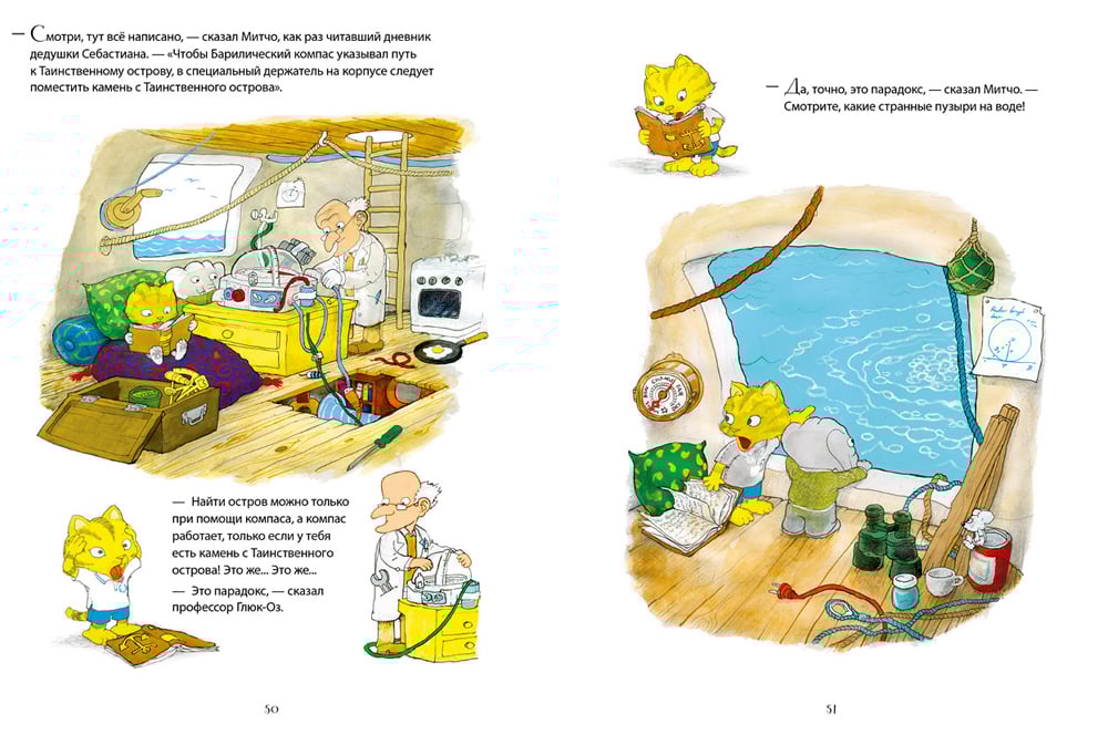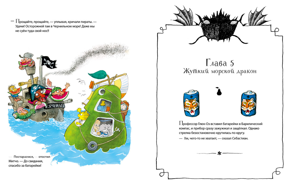Митчо и Себастиан - лучшие друзья. Они живут в маленьком городке Сульбю. Однажды они выловили в море бутылку с письмом от бывшего бургомистра Сульбю, таинственно пропавшего год назад. Ещё в бутылке нашлась странная косточка. Так начались удивительные приключения Митчо и Себастиана, которым предстоит отправиться на поиски бургомистра и Таинственного острова, столкнуться с Жестокими пиратами, Жутким морским драконом и преодолеть Чернильное море.| Издательство | Клевер-Медиа-Групп |