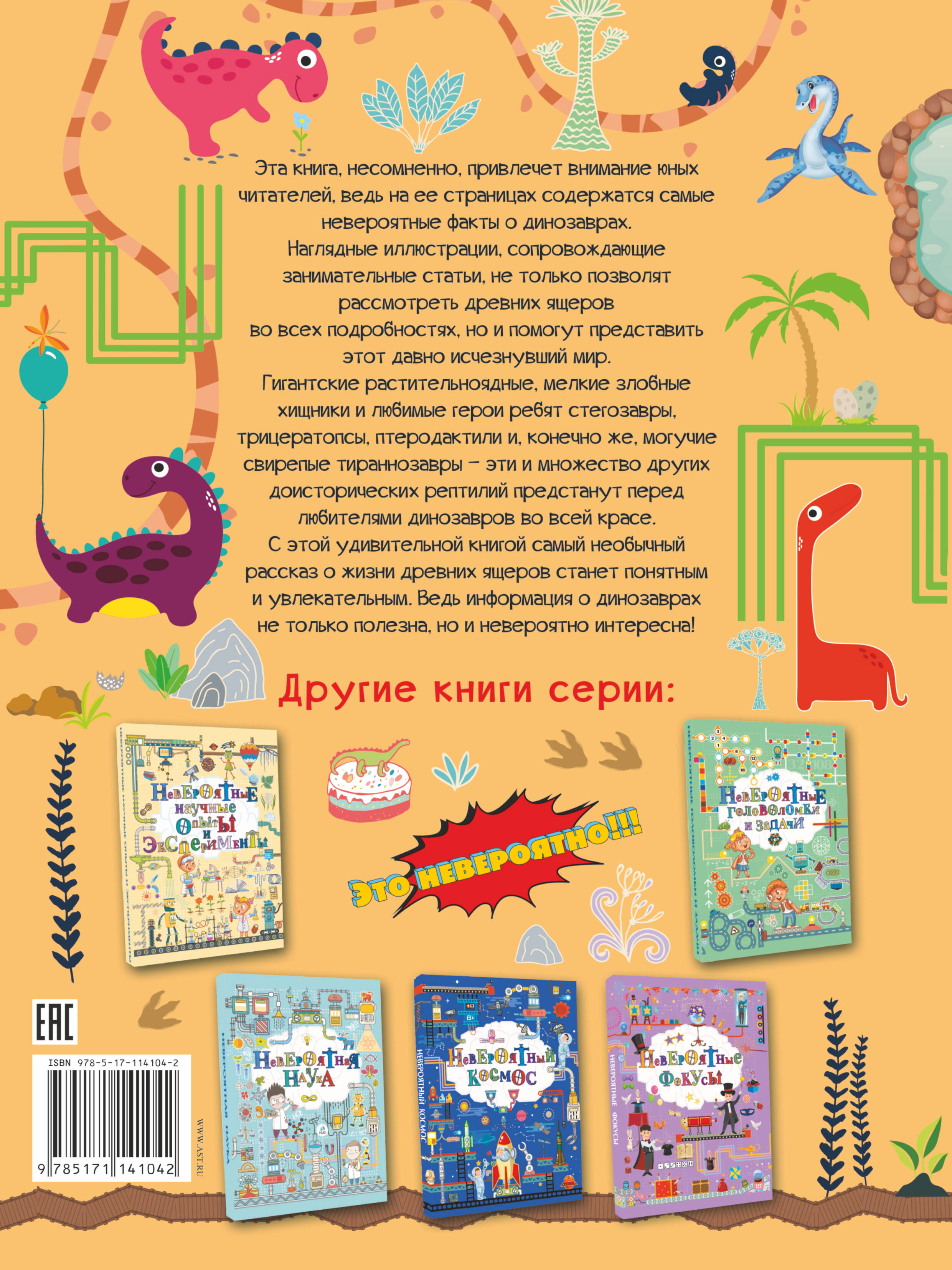 Эта книга, несомненно, привлечет внимание юных читателей, ведь на ее страницах содержатся самые невероятные факты о динозаврах. Наглядные иллюстрации, сопровождающие занимательные статьи, не только позволят рассмостреть древних ящеров во всех подробностях, но и помогут представить этот давно исчезнувший мир. Гигантские растительноядные, мелкие злобные хищники и любимые герои ребят стегозавры, трицератопсы, птеродактили и, конечно же, могучие свирепые тираннозавры - эти и множество других доисторических рептилий предстанут перед любителями динозавров во всей красе. С этой удивительной книгой самый необычный рассказ о жизни древних ящеров станет понятным и увлекательным. Ведь информация о динозарах не только полезна, но и невероятно интересна!