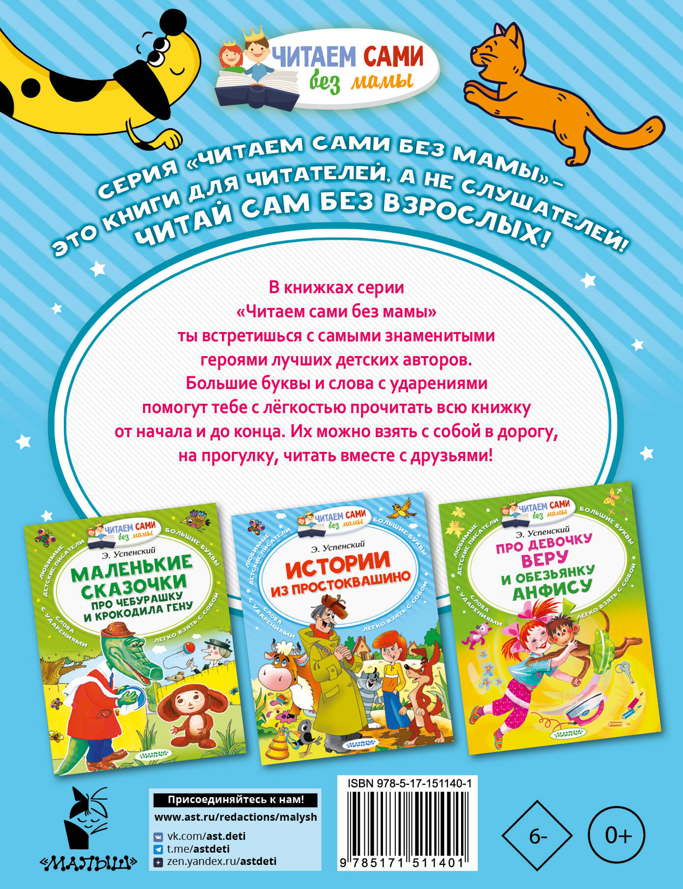 В книгах серии "Читаем сами без мамы" вы найдёте подборку самых лучших произведений, с которыми каждый должен познакомиться ещё в детстве. Большие буквы и слова с ударениями помогут ребёнку с лёгкостью прочитать книгу. Её можно взять с собой в дорогу, на прогулку, читать вместе с друзьями.| Издательство | ИЗДАТЕЛЬСТВО "АСТ" |
