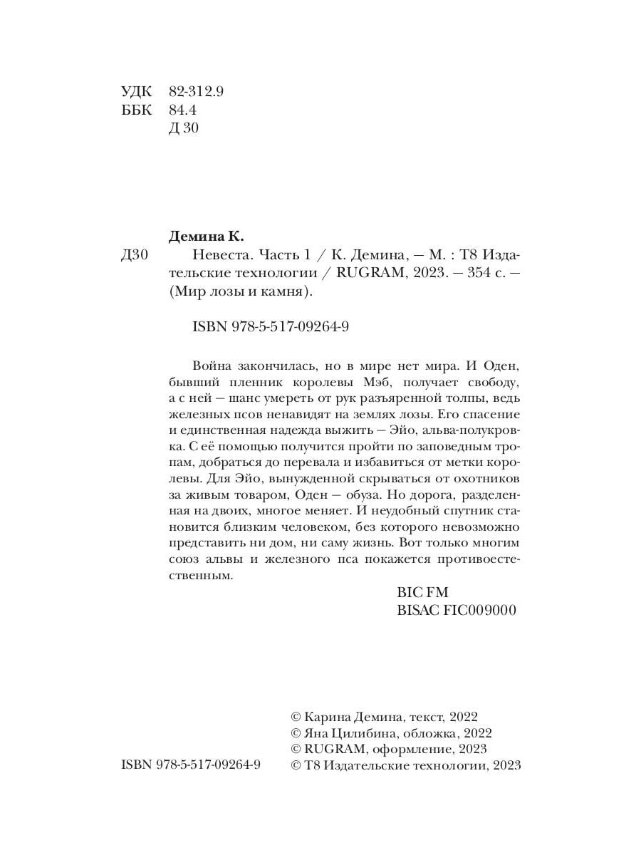 Война закончилась, но в мире нет мира. И Оден, бывший пленник королевы Мэб, получает свободу, а с ней - шанс умереть от рук разъяренной толпы, ведь железных псов ненавидят на землях лозы. Его спасение и единственная надежда выжить - Эйо, альва-полукровка. С её помощью получится пройти по заповедным тропам, добраться до перевала и избавиться от метки королевы. Для Эйо, вынужденной скрываться от охотников за живым товаром, Оден - обуза. Но дорога, разделенная на двоих, многое меняет. И неудобный спутник становится близким человеком, без которого невозможно представить ни дом, ни саму жизнь. Вот только многим союз альвы и железного пса покажется противоестественным.