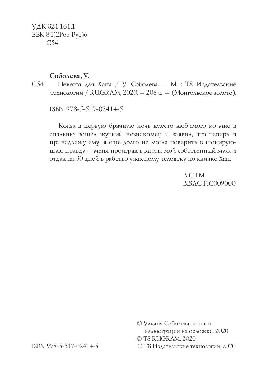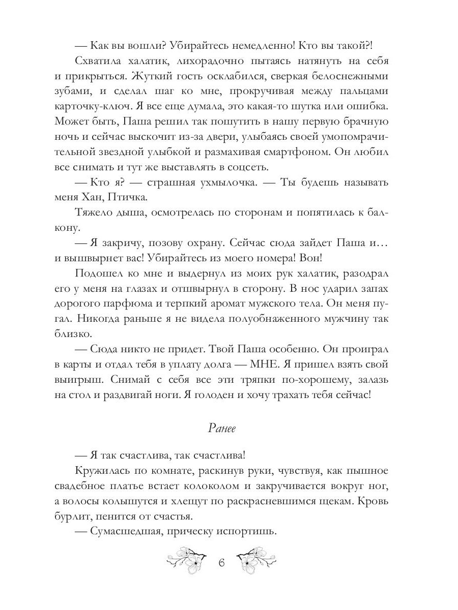Когда в первую брачную ночь вместо любимого ко мне в спальню вошел жуткий незнакомец и заявил, что теперь я принадлежу ему, я еще долго не могла поверить в шокирующую правду - меня проиграл в карты мой собственный муж и отдал на 30 дней в рабство ужасному человеку по кличке Хан.| Издательство | Т8 RUGRAM |