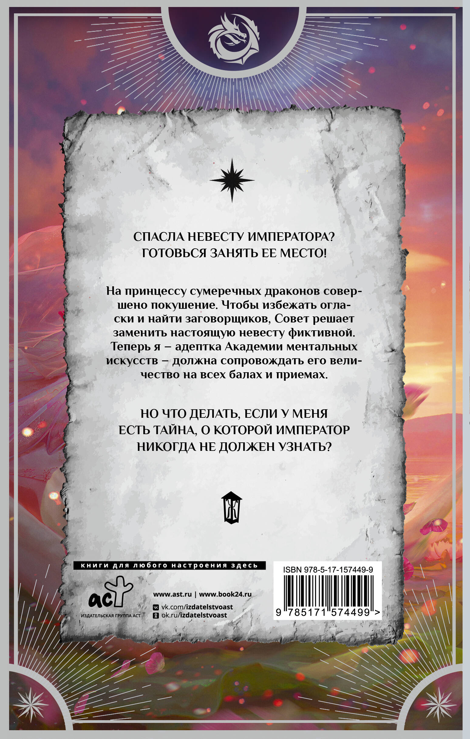 Спасла невесту императора? Готовься занять ее место! На принцессу сумеречных драконов совершено покушение. Чтобы избежать огласки и найти заговорщиков, Совет решает заменить настоящую невесту фиктивной. Теперь я - адептка Академии ментальных искусств - должна сопровождать его величество на всех балах и приемах. Но что делать, если у меня есть тайна, о которой император никогда не должен узнать?| Издательство | ИЗДАТЕЛЬСТВО "АСТ" |