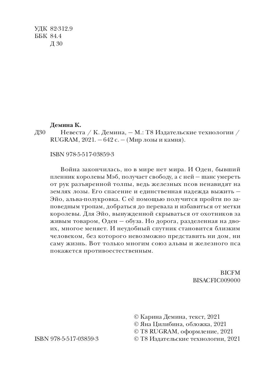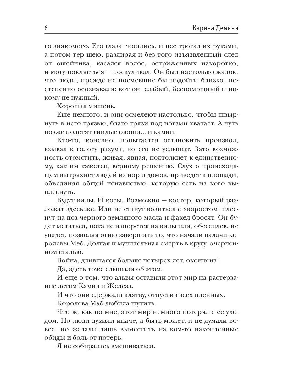 Война закончилась, но в мире нет мира. И Оден, бывший пленник королевы Мэб, получает свободу, а с ней - шанс умереть от рук разъяренной толпы, ведь железных псов ненавидят на землях лозы. Его спасение и единственная надежда выжить - Эйо, альва-полукровка. С ее помощью получится пройти по заповедным тропам, добраться до перевала и избавиться от метки королевы. Для Эйо, вынужденной скрываться от охотников за живым товаром, Оден - обуза. Но дорога, разделенная на двоих, многое меняет. И неудобный спутник становится близким человеком, без которого невозможно представить ни дом, ни саму жизнь. Вот только многим союз альвы и железного пса покажется противоестественным.| Издательство | Т8 RUGRAM |