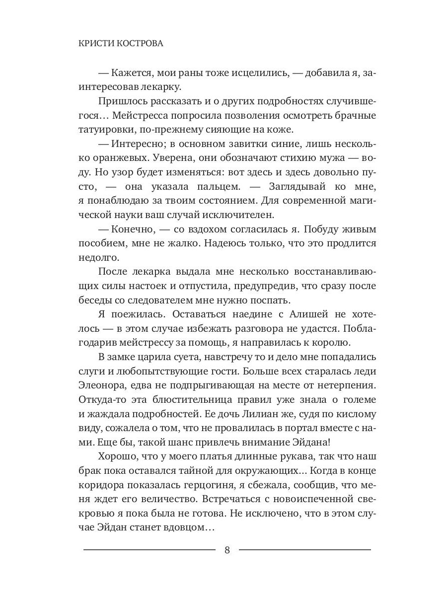 Проклятие снято, и моя магия свободна. Однако появилась новая проблема: стихии выдали меня замуж, не спрашивая согласия! Теперь мои руки украшают брачные татуировки, а наши с Эйданом ауры связаны. Но я вольна сама выбирать свою судьбу! И с новоиспеченным мужем обязательно разберусь!