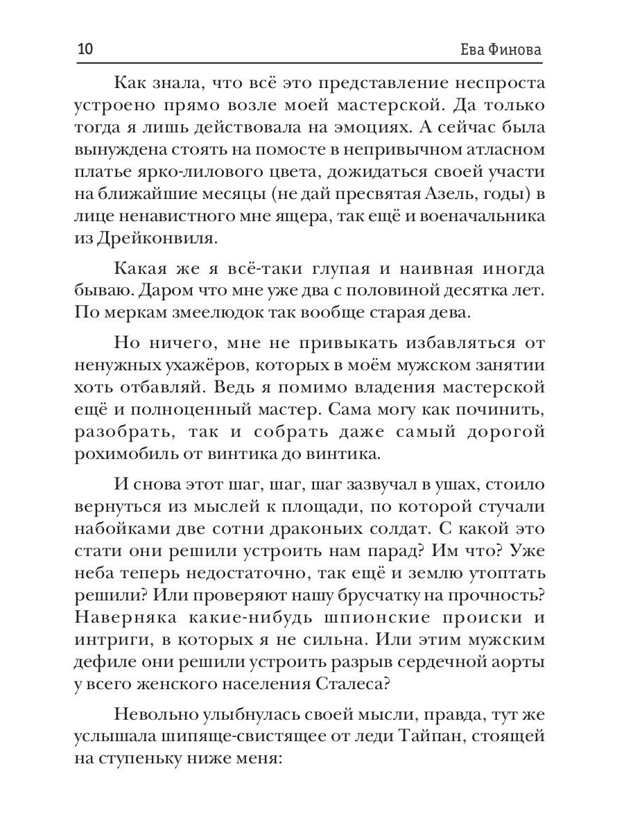 Владелице ремонтной мастерской, Фибиан, была уготована роль комнатной зверушки в предстоящем брачном союзе с маршалом. Да только она не зверолюдка. Более того, её вынудили согласиться на роль невесты военачальника драконов, заверяя, что игра скоро закончится и она вновь будет свободна, как ветер в пластинчатых крыльях. Но, оказалось, у судьбы иные планы. У маршала иные планы…| Издательство | Т8 RUGRAM |
