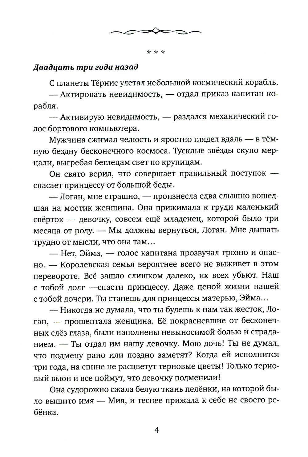 Аррон Ридден - секретный инопланетный агент, потерпевший крушение на богом забытой планете и оказался в плену. Отныне, он - развлечение. Мия Нейл - робкая и немая девушка. Она оказалась в этом ужасном мире ещё младенцем. Её обязанности - убирать за пленными после кровавых боёв и излечивать их раны своим даром. Он стремится к побегу и в его планы не входит никого спасать. Она давно перестала мечтать, верить и покорилась злому року. Смогут ли выбраться герои из этого ада или судьба навеки отвернулась от них? Всё изменится, когда он увидит терновые цветы на её спине - принадлежность к королевскому роду древней расы тёрнов.