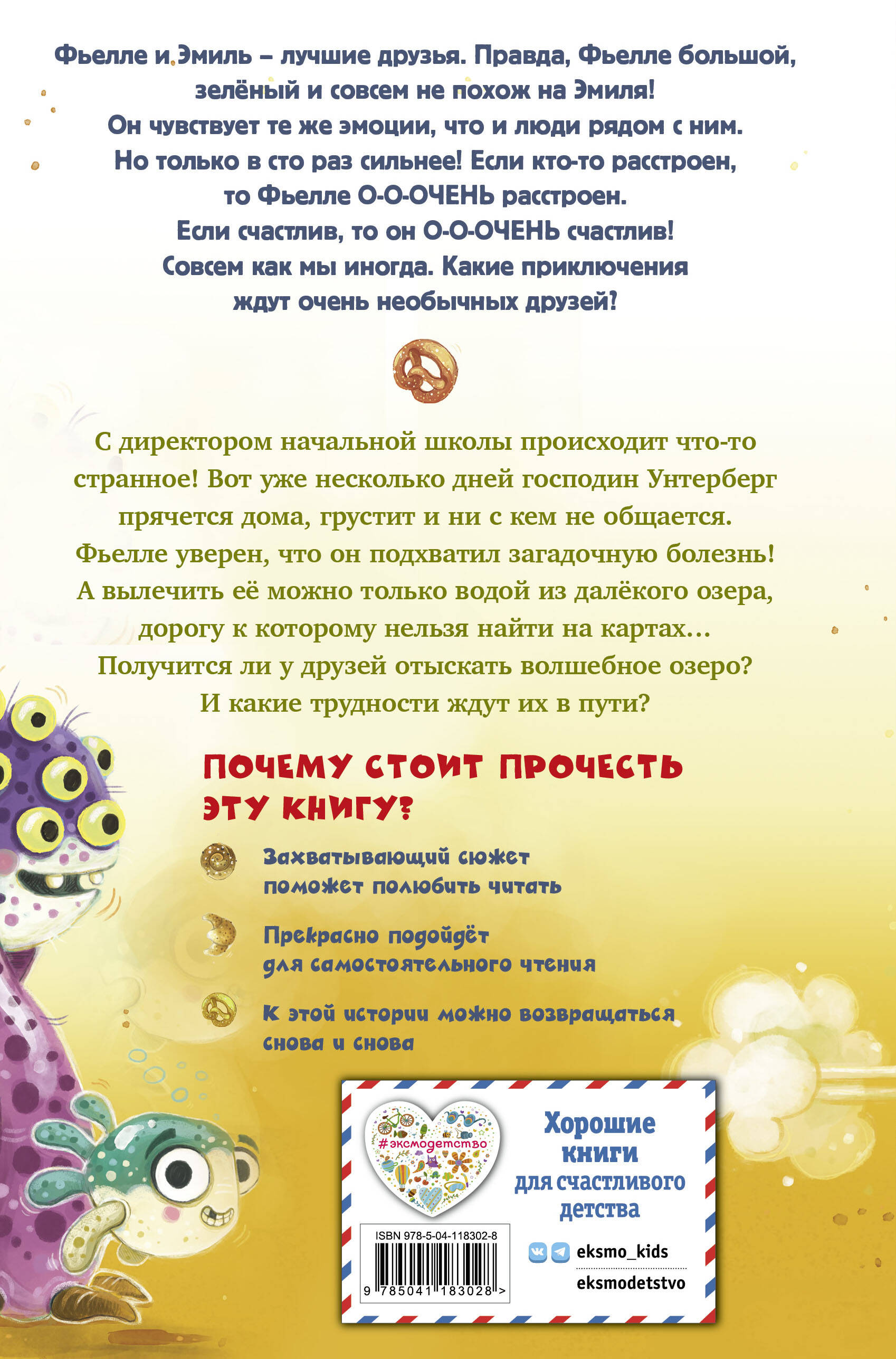 Фьелле и Эмилю очень весело в школе! Вот только с директором происходит что-то очень странное. Господин Унтерберг совсем-совсем перестал выходить из дома. Фьелле уверен: директор подхватил загадочную болезнь. А вылечить её можно лишь водой из далёкого озера, дорога к которому опасная и трудная. Получится ли у друзей помочь директору? По-настоящему жизнеутверждающая книга! Автор не только рассказывает увлекательную историю, но и поднимает очень важные для каждого ребёнка вопросы. Как справляться со своими чувствами? И стоит ли стесняться негативных эмоций? Динамичный сюжет, от которого невозможно оторваться, дополняют чёрно-белые иллюстрации. Нина Дуллек - художница, которая оформила более восьмидесяти детских книг.| Издательство | ООО "Издательство "Эксмо" |