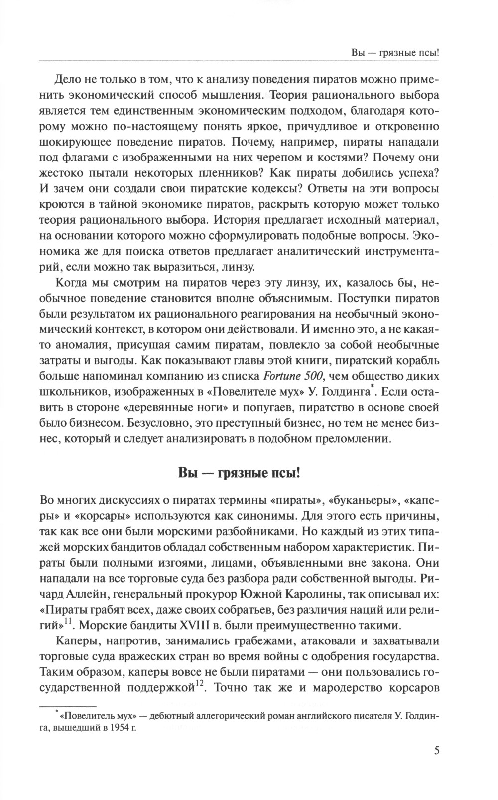 В книге Питера Т. Лисона на примере истории пиратских сообществ начала XVIII века обсуждаются проблемы экономического равновесия в условиях криминализованного сообщества. Мотивы и стимулы поведения членов таких сообществ вскрыты в книге с помощью современных методов экономического анализа и теории рационального выбора. Книга - это живой рассказ о реальных людях и исторических событиях. Питер Т. Лисон показывает, что экономическая эффективность пиратства требовала демократической организации и строгих правил, регламентирующих поведение морских разбойников.| Издательство | Издательский дом "Дело" РАНХиГС |