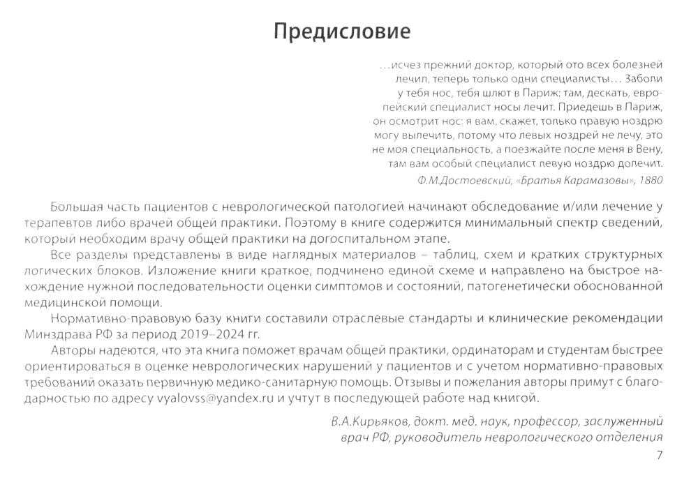 В книге кратко представлены сведения по диагностике и лечению заболеваний нервной системы в адаптированной для врачей общей практики форме. В нее включены наиболее частые неврологические заболевания и состояния, приведены примерные схемы обследования и лечения пациентов. Все разделы представлены в виде наглядных материалов - структурных логических блоков, схем, таблиц и рисунков. Форма книги и указателя к ней позволят по ключевому слову найти нужное заболевание, синдром или состояние, а также необходимые лекарственные средства для назначения лечения. Нормативно-правовую базу книги составили клинические рекомендации и отраслевые стандарты Минздрава РФ за период с 2019-го по 2024 г., а также обобщен опыт работы авторов на клинических базах.| Издательство | Умный доктор |