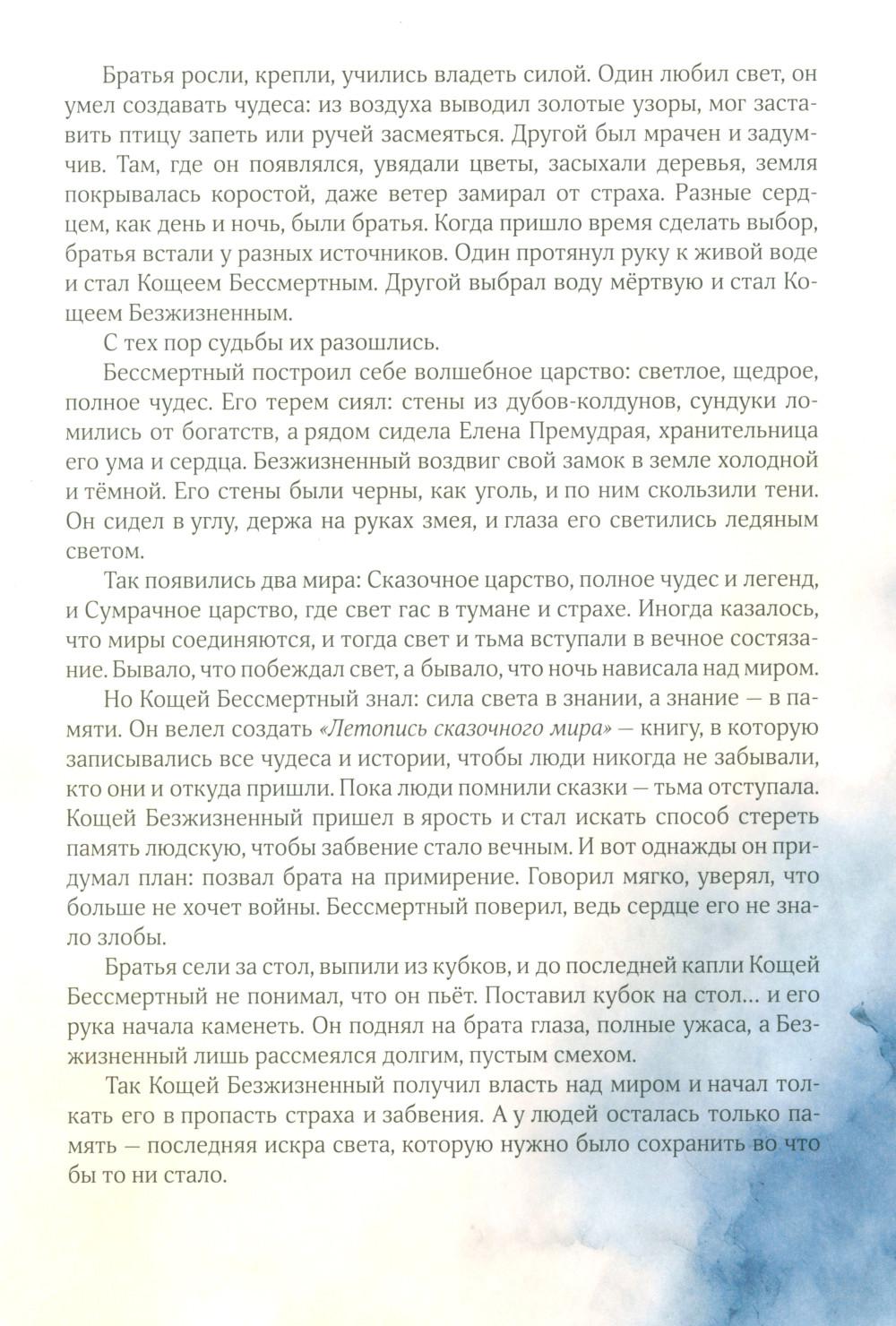 «Невская сказка» - это пенталогия из пяти мистических детских романов. Кощей Безжизненный - брат-близнец всем известного Бессмертного - задался целью занять место своего ближайшего родственника и стать полноценным хозяином фантазий и мифологии человеческого мира. Он пойдет на многое для достижения своей цели, задействует все темные силы, но он не ожидает, насколько велико будет противостояние. Итог этой вечной битвы добра со злом станет неожиданным для читателя и заставит задуматься над философией выбора. Первая книга цикла: «Невская сказка. Летопись» - это борьба за культуру, в которой Кощей Безжизненный выбрался обманным путем из Зазеркалья, превратил сказочных героев в камень и хочет стереть все сказки из памяти человечества. Единственный, кто избежал его чар, Леший, отправившийся в мистический Петербург спасать волшебный мир. К нему присоединяются сирота Шурик, ищущий пропавшую бабушку, и модный блогер - девочка Сашенька, сбежавшая из пансиона благородных девиц. Вместе с учителем танцев Куртуазным и инспектором Жегловой они бросят вызов слугам Безжизненного: Королеве Крыс, зловещему Кукловоду и Сетевому Червю. С помощью путеводного клубка и персонажей петербургского фольклора - Пиковой Дамы, Книжного Червя и кота-Баюна герои вступят в схватку за театры, библиотеки и музеи города. Смогут ли они победить тьму и вернуть сказку в мир, где уже никто не верит в чудеса?| Издательство | Изд. Сидорович |
