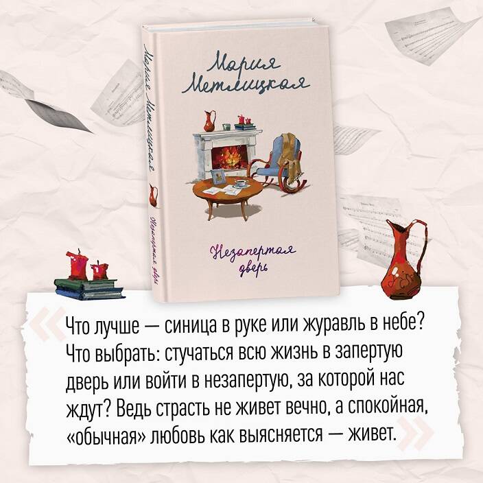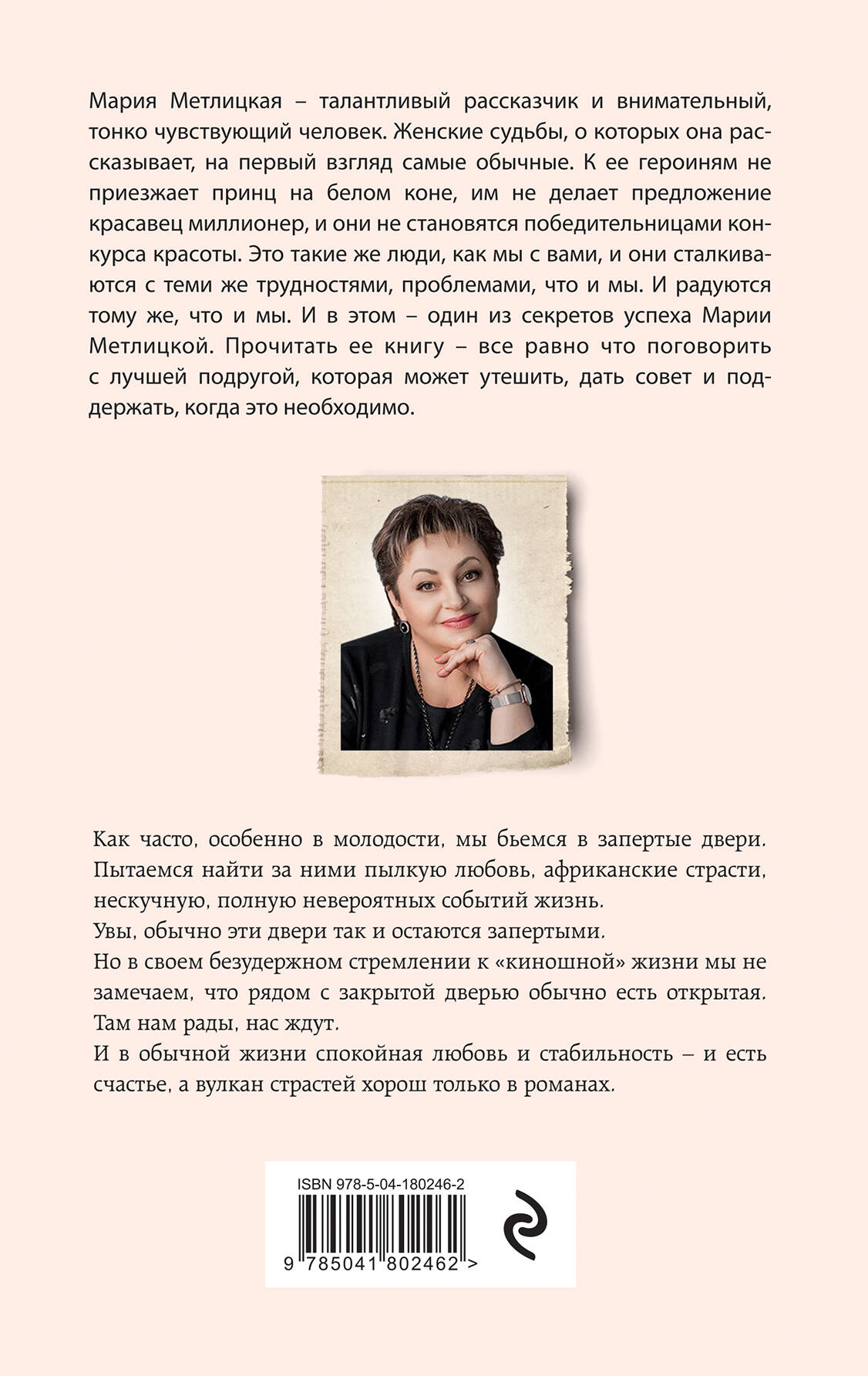 Мария Метлицкая не нуждается в представлении. Ее книги любят, читают, передают из рук в руки. Они из тех, что могут помочь в трудную минуту, когда не знаешь, как поступить и с кем поделиться. Под обложкой новой книги - повесть и два рассказа, объединенные сквозной линией. Что лучше - синица в руке или журавль в небе? Что выбрать: стучаться всю жизнь в запертую дверь или войти в незапертую, за которой нас ждут? Ведь страсть не живет вечно, а спокойная, «обычная» любовь как выясняется - живет.| Издательство | ООО "Издательство "Эксмо" |