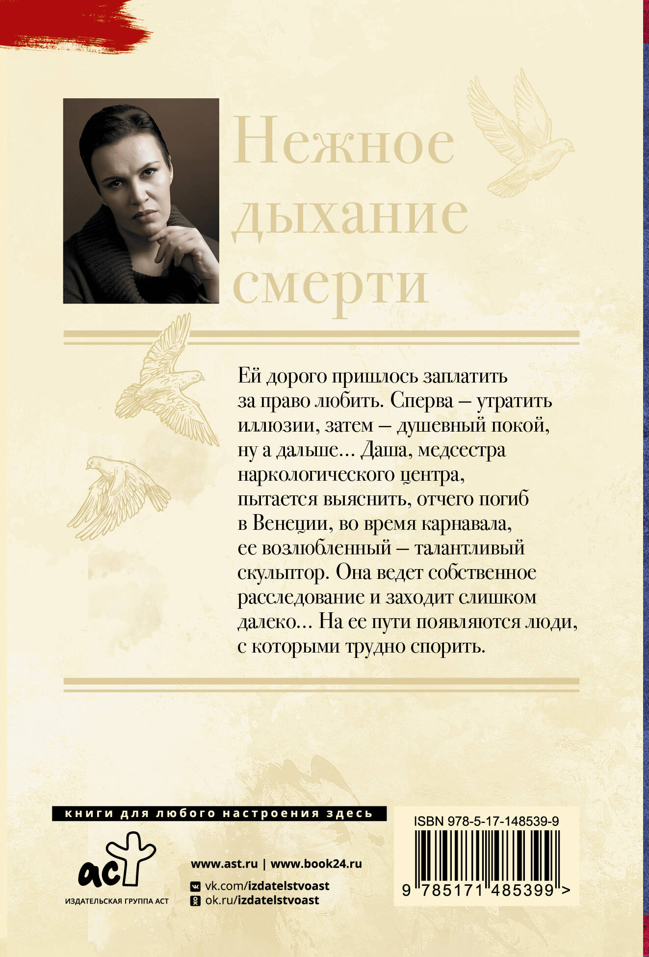 Ей дорого пришлось заплатить за право любить. Сперва - утратить иллюзии, затем - душевный покой, ну а дальше… Даша, медсестра наркологического центра, пытается выяснить, отчего погиб в Венеции, во время карнавала, ее возлюбленный - талантливый скульптор. Она ведет собственное расследование и заходит слишком далеко… На ее пути появляются люди, с которыми трудно спорить.| Издательство | АСТ |
