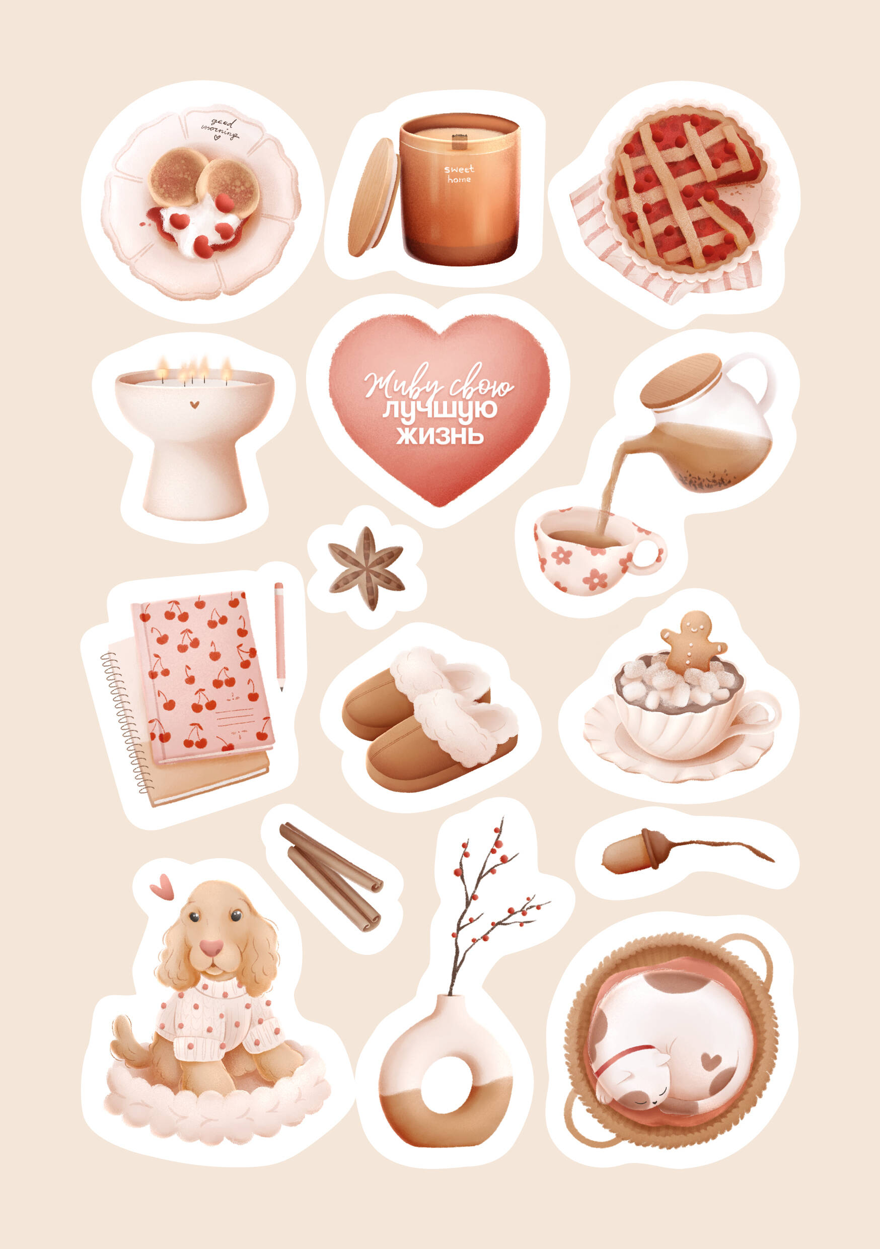 Нежность деталей. Набор стикеров А5 от Ольги Примаченко (5 листов стикеров)