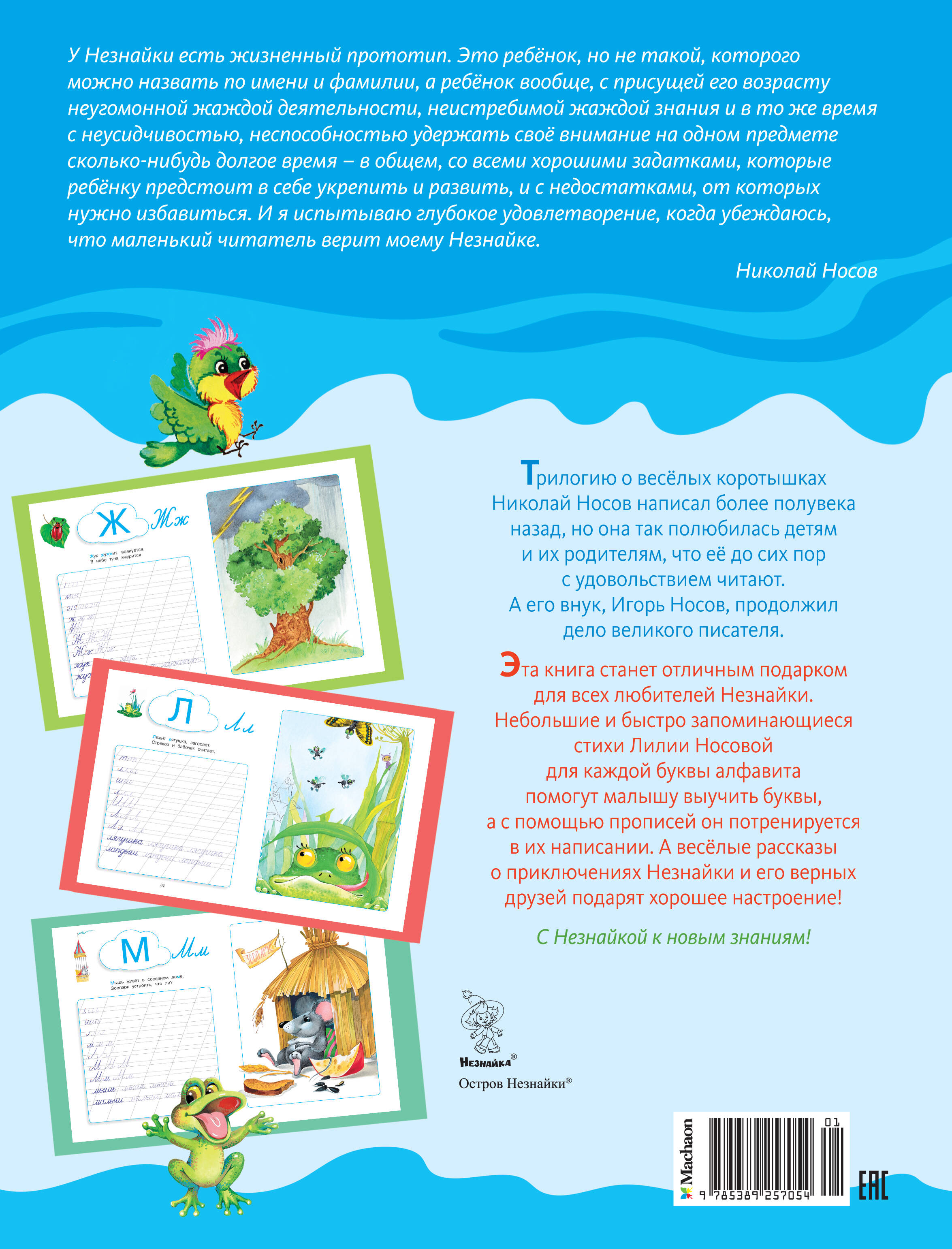 Трилогию о весёлых коротышках Николай Носов написал более полувека назад, но она так полюбилась детям и их родителям, что её до сих пор с удовольствием читают. А его внук, Игорь Носов, продолжил дело великого писателя. Эта книга станет отличным подарком для всех любителей Незнайки. Простые и хорошо запоминающиеся стихи Лилии Носовой для каждой буквы алфавита помогут малышу выучить буквы, и попробовать написать их с помощью прописей. А весёлые рассказы о приключениях Незнайки и его верных друзей подарят хорошее настроение! С Незнайкой к новым знаниям!| Издательство | Азбука-Аттикус Издат.группа ООО |