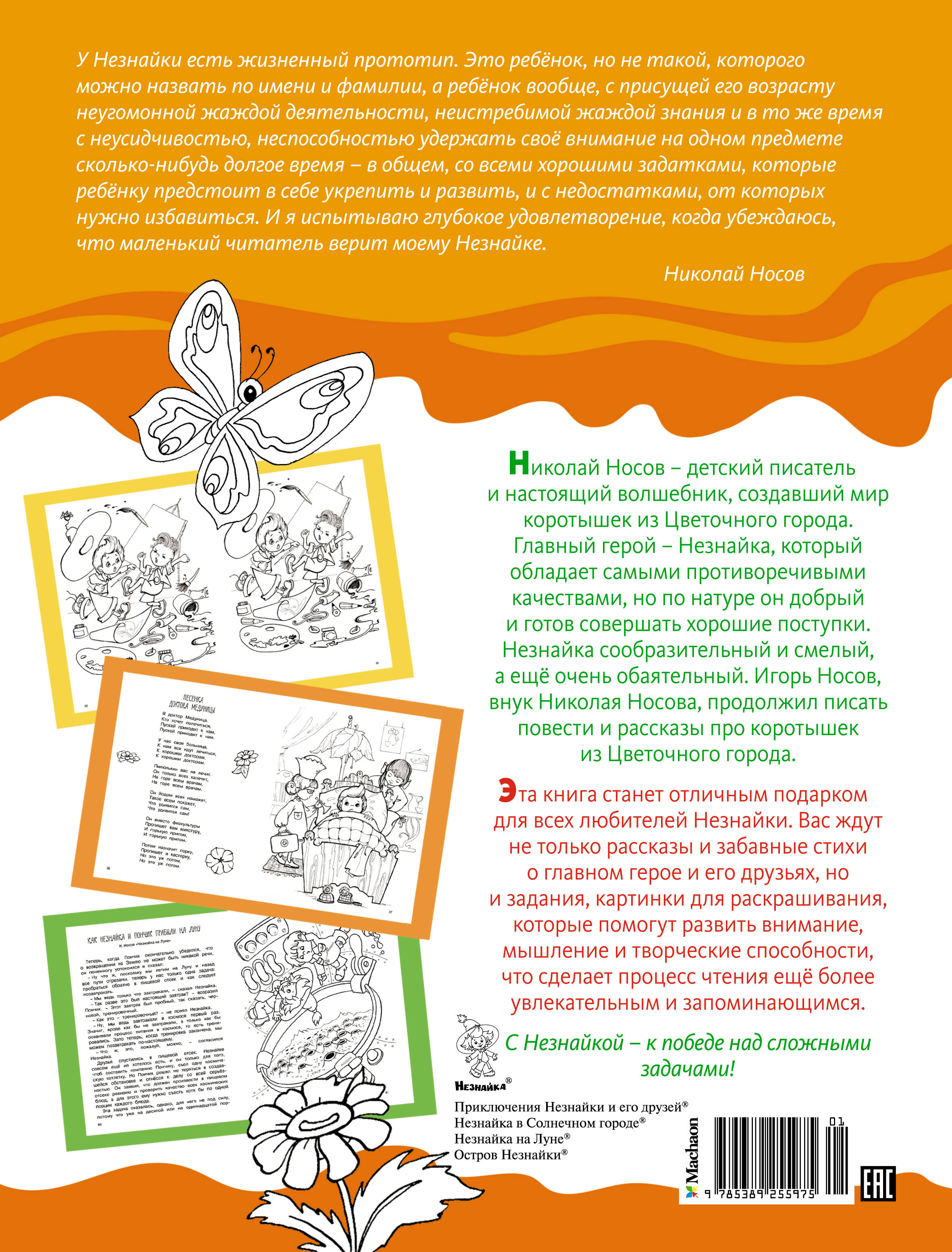Николай Носов - детский писатель и настоящий волшебник, создавший мир коротышек из Цветочного города. Главный герой - Незнайка, который обладает самыми противоречивыми качествами, но по натуре он добрый и готов совершать хорошие поступки. Незнайка сообразительный и смелый, а ещё очень обаятельный. Игорь Носов, внук Николая Носова, продолжил писать повести и рассказы про коротышек из Цветочного города. Эта книга станет отличным подарком для всех любителей Незнайки. Вас ждут не только рассказы и забавные стихи о главном герое и его друзьях, но и задания, картинки для раскрашивания, которые помогут развить внимание, мышление и творческие способности, что сделает процесс чтения ещё более увлекательным и запоминающимся.| Издательство | Азбука-Аттикус Издат.группа ООО |