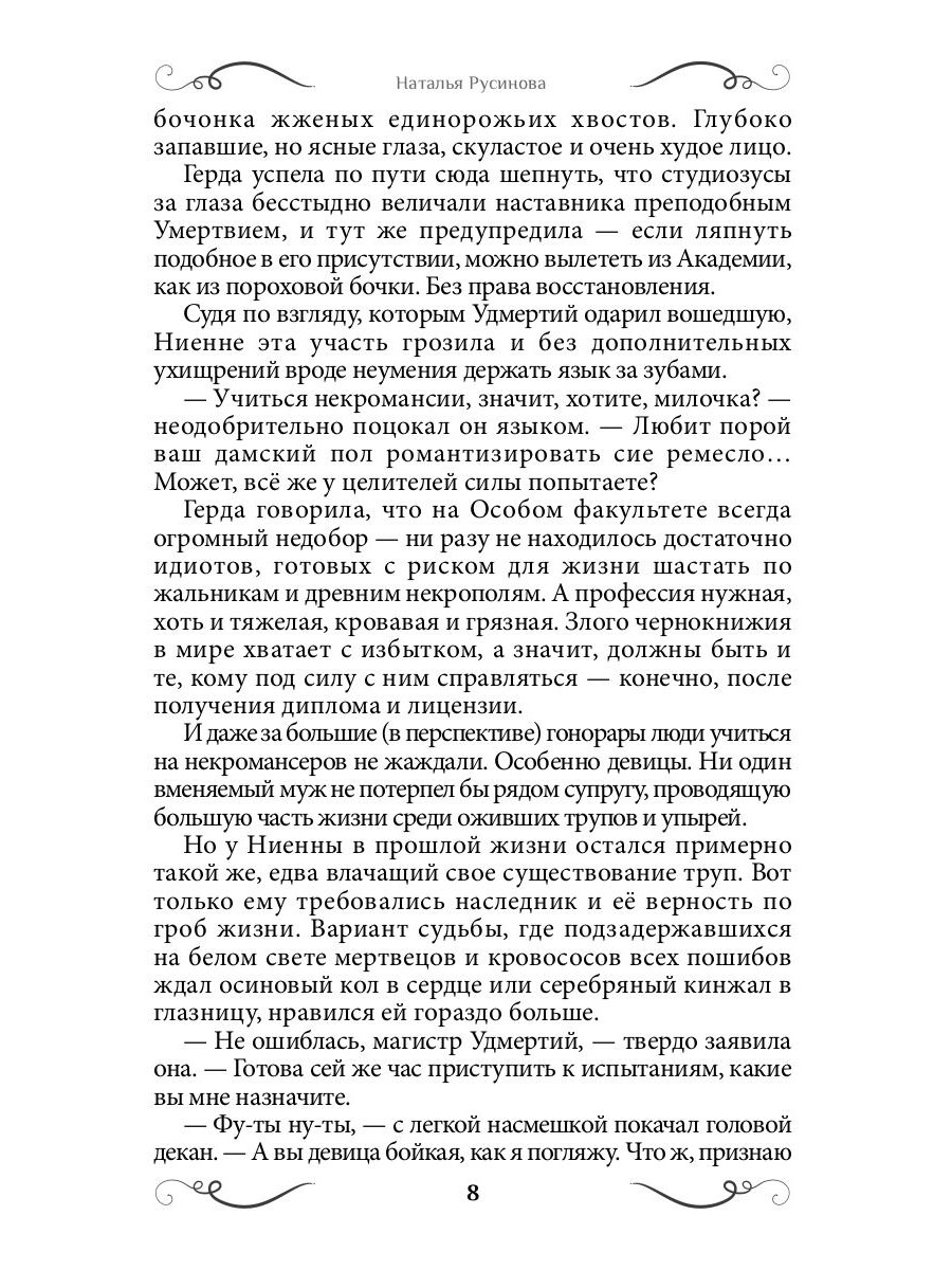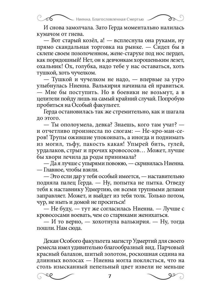 Юная Ниенна Антарская бежит от нежеланного брака в академию Боевых, Целительских и Особых искусств столичного града Ахенбурга. Но в боевики худосочную девицу не примут, в целители самой не хочется. Остается один вариант - стать некромансеркой, служительницей Милосердной Смерти. Сражаться с упырями, волкодлаками и прочей нечистью в компании подруги-валькирии Герды, осваивать хитрую науку запечатывания жальников - и искать по белу свету возлюбленного с огненным сердцем, которого напророчил ей шаман...| Издательство | Т8 RUGRAM |