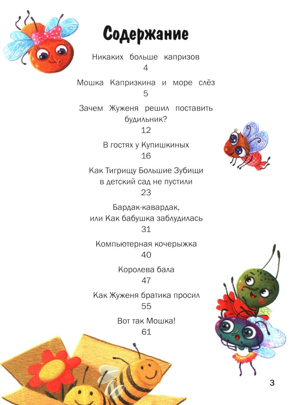 Весёлые сказки о приключениях забавных насекомых просто и с юмором расскажут детям о полезных привычках. Вместе с главными героями шмеликом Жуженей, пчёлкой Жужулей и Мошкой Капризкиной малыши научатся быть вежливыми и вести здоровый образ жизни, самостоятельно одеваться, следить за порядком в комнате, не совершать ненужных покупок в магазине, соблюдать гигиену и режим дня, проявлять заботу к младшим братьям и сёстрам. Теперь НИКАКИХ БОЛЬШЕ КАПРИЗОВ.| Издательство | Феникс |